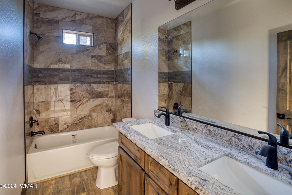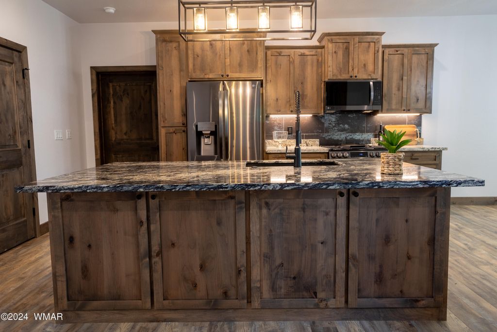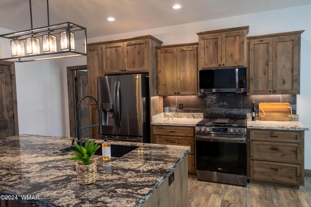 Escape to Mountain Luxury in Pinetop Indulge in the fine mountain living you've longed for with this breathtaking new construction cabin nestled in the heart of Pinetop's majestic White Mountains. This stunning retreat boasts four spacious bedrooms and three modern bathrooms, providing ample space for family and guests to unwind in comfort. As you step inside, the grandeur of deep vaulted ceilings with exposed truss beams greets you, framing a spectacular full custom tile fireplace that anchors the living space. The warmth of the huge barn wood accent wall is complemented by the beauty of waterproof engineered flooring throughout, crafting a comfortable, rustic and modern atmosphere. Gourmet experiences await in a state-of-the-art kitchen featuring (see supplement)
