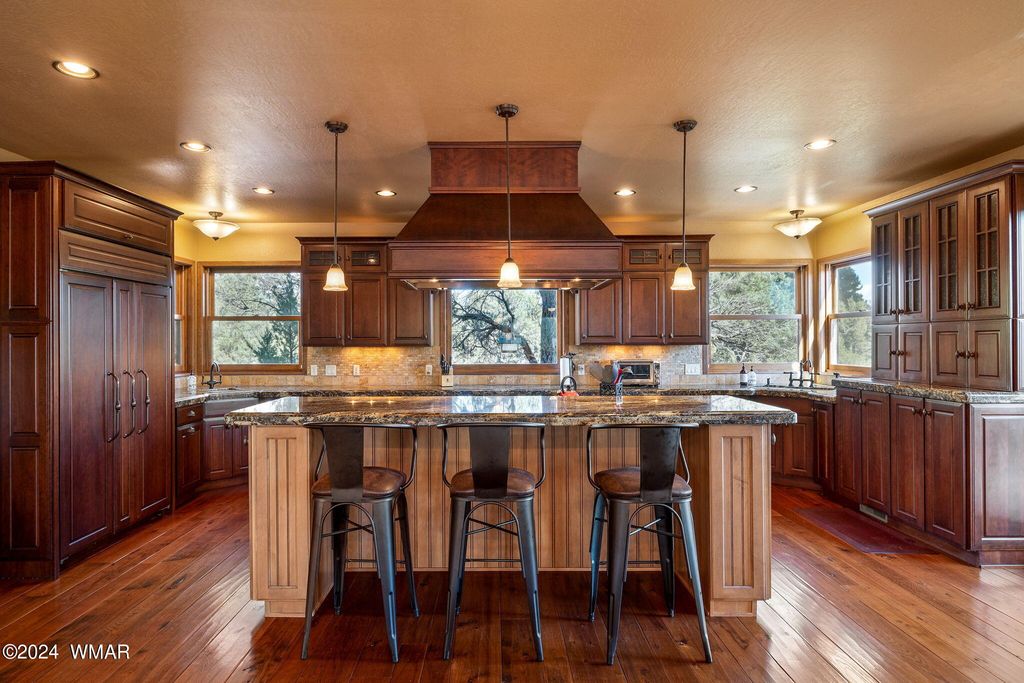 Experience the ultimate in luxury living at this magnificent hilltop retreat! With expansive decks offering breathtaking views, this custom-built home is a true gem. Step inside to find wide wood plank hickory floors that lead you to a spacious living room. The chef's kitchen is a dream, featuring gorgeous cabinetry, a Sub-Zero fridge, Wolf gas double oven, large slab granite counters, walk in pantry & a cozy sitting area. Every bedroom boasts an en suite, with one conveniently located on the main level as well as the laundry. Ascend the stunning staircase to discover a huge family room complete with a fireplace & split floor plan. Two additional bedrooms, along with a lavish primary suite that includes its own fireplace and private deck. The en suite bathroom is a true oasis, featuring double vanities, his and her toilet rooms, a soaking tub, a gas fireplace, and an adjoining office with a kitchenette. Complete with a fully fenced backyard for privacy, gas fire pit and hot tub. All of this on 1.26 acres. You must see this to appreciate it.