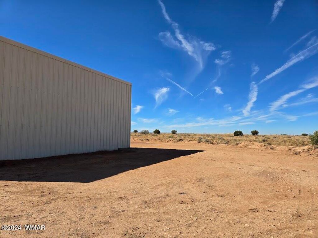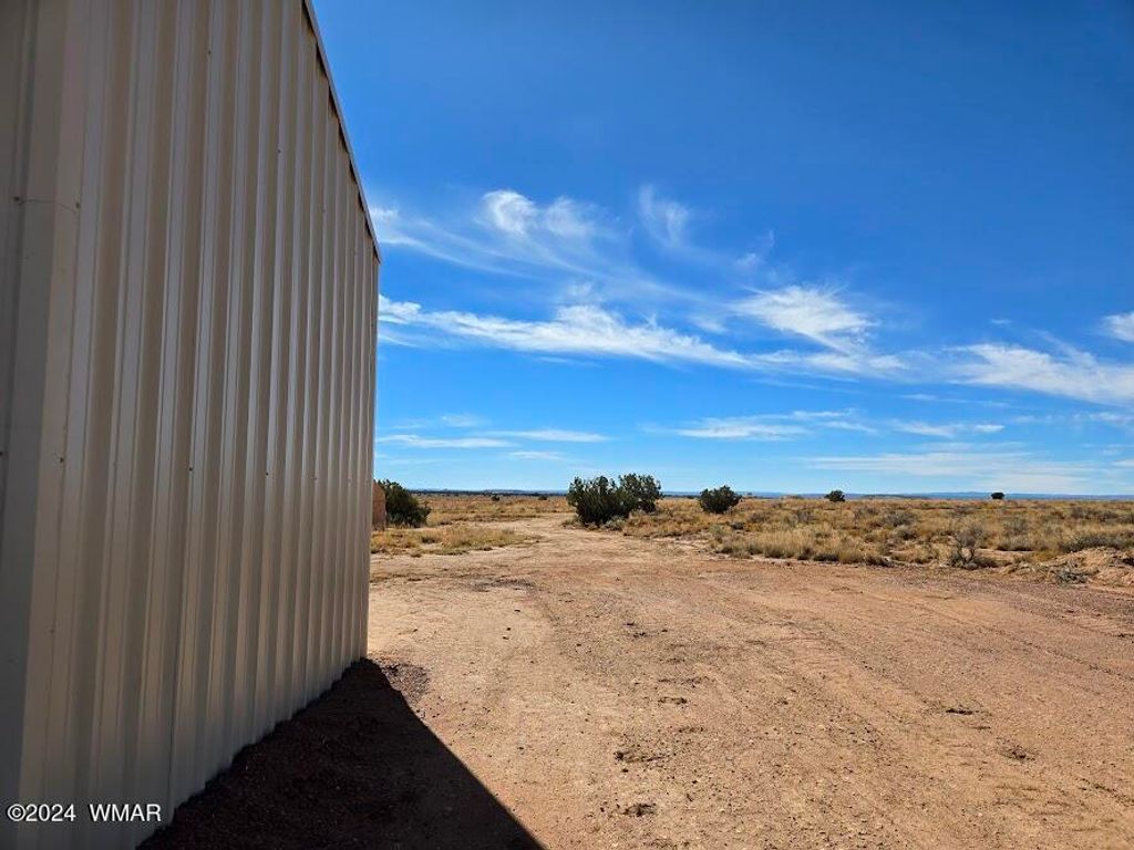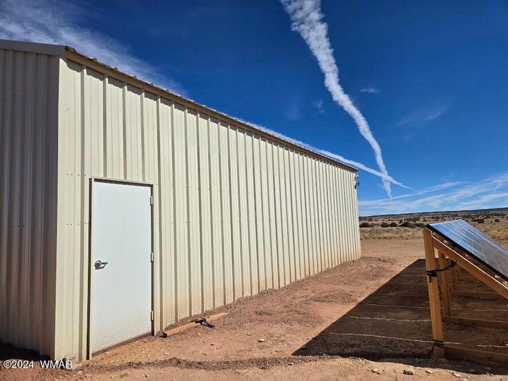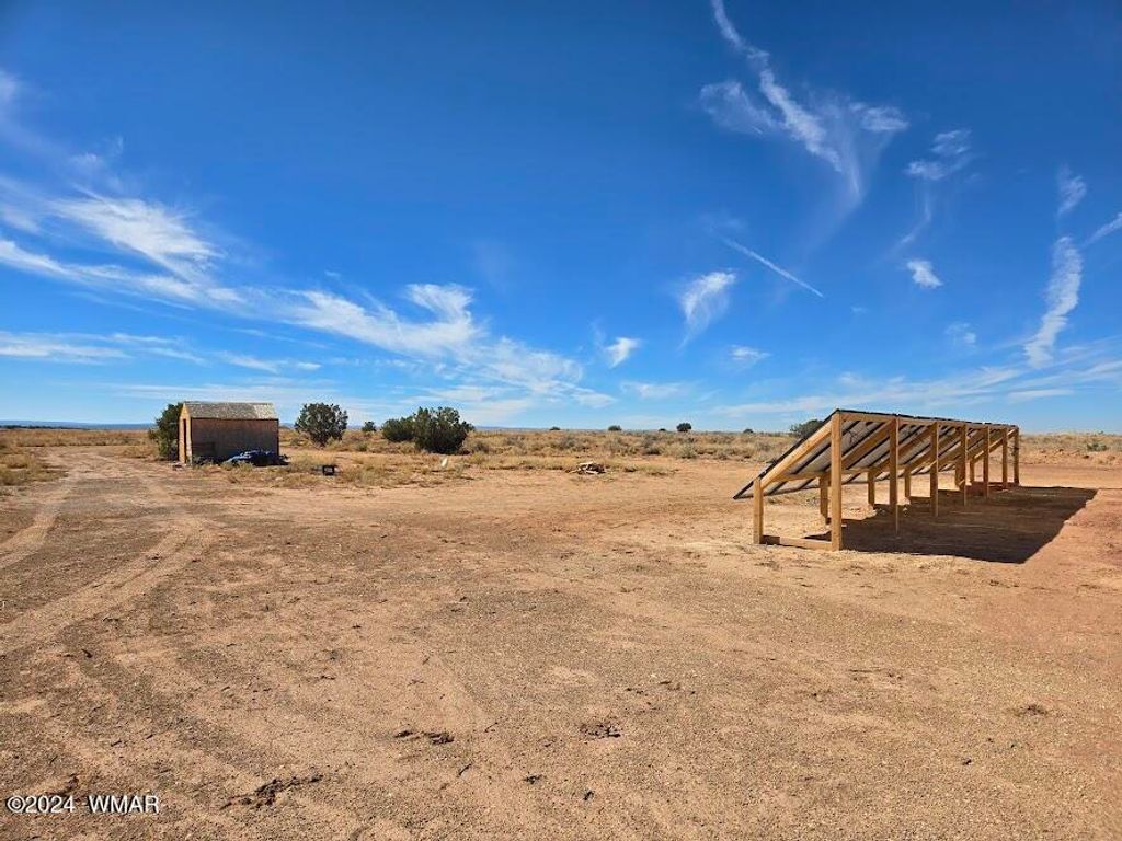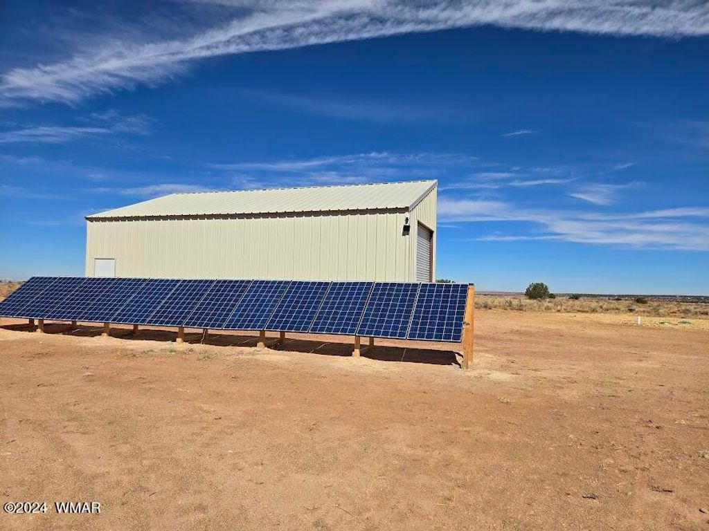 If you are looking for some acreage, yet still want to be close to town, this 5 acre parcel may be the right fit! This lot is mostly flat with some gentle sloping, making for a great place to build your dream home, or a vacation get away. Nice views, only about 10 minutes from Main Street, and less than an hour to the mountains and tall pines. Get that secluded feeling without being far from the amenities of town. Seller has added septic for you and a large 20 x 40 foot steel building with concrete floor to house your RV or your toys, etc. Property has also been set up with enough solar to power an RV or mobile home. Seller is open to renting an RV space on the property. Space will include hook ups to 110 or 220 volts of solar power and dump station.