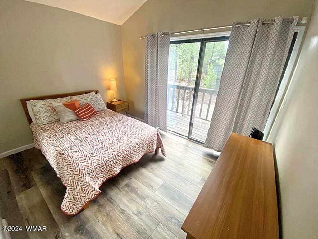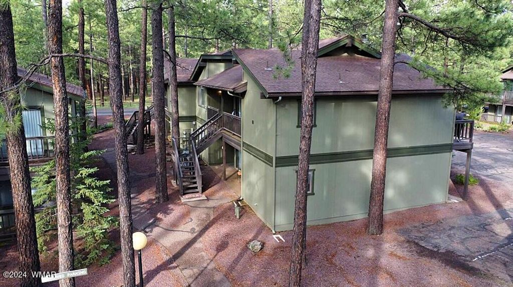 This is it! This U/S condo in Sports Village 2 helps maximize your living space without breaking the bank! Step in to find a Great Room with Vaulted Ceilings and exposed beams! Enjoy natural light, warm tones and plenty of space for all. The split floor plan has 2 condo entrances, allowing for a 2/1 and 1/1 rental opportunity if desired. Wood Fireplace & ETS heater for year round coziness too. Covered Decks in front and back, and new security screen doors! Great Location, close to golf, National Forest, shopping, restaurants, Sunrise, & more! Currently a successful Airbnb, this mountain home comes fully furnished and ready on Day 1! Tons of tall pines & beautiful trees on site. BONUS: The condo below is also for sale by the same owner. Buy both and SAVE $$. A great opportunity awaits!