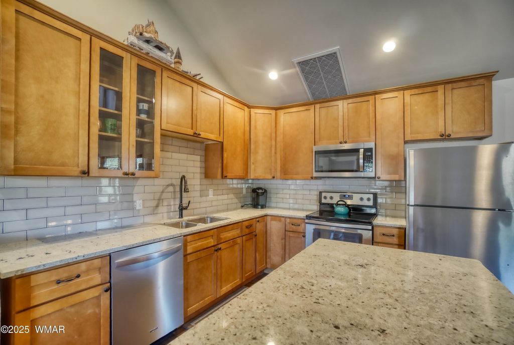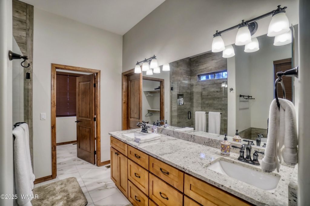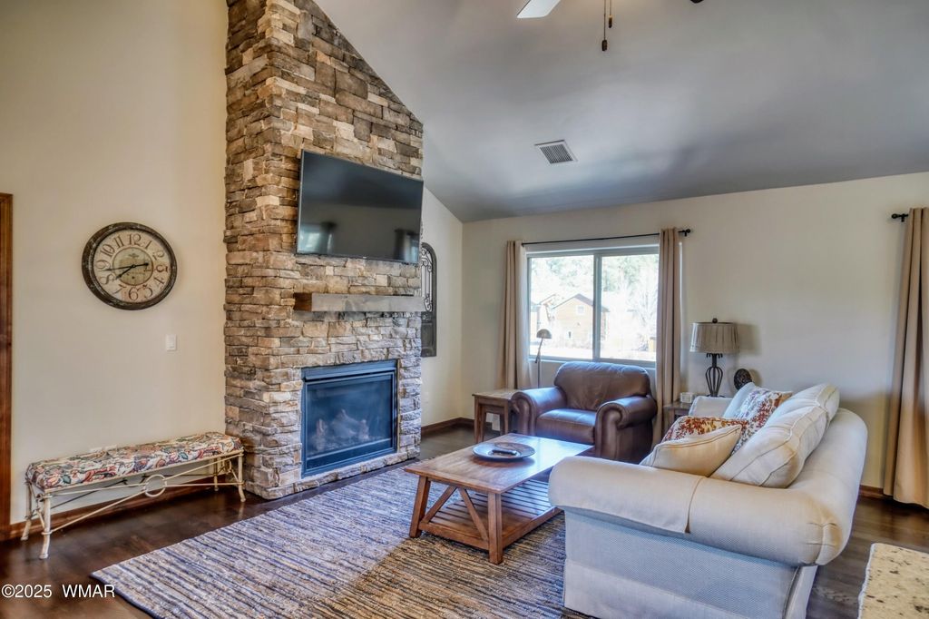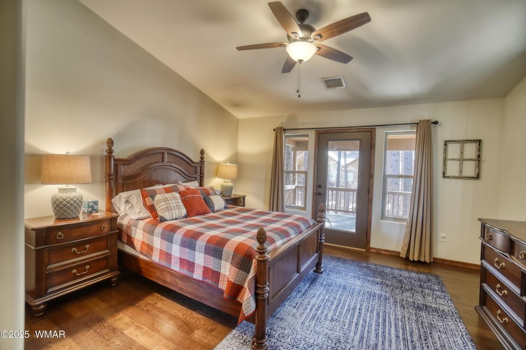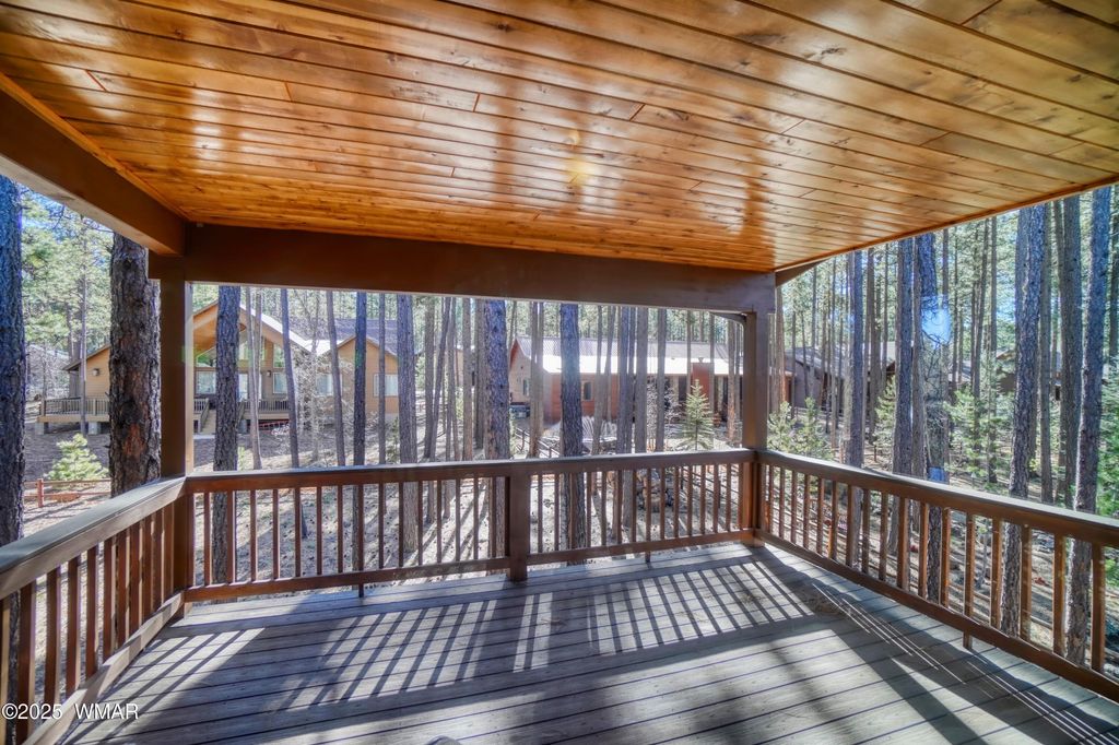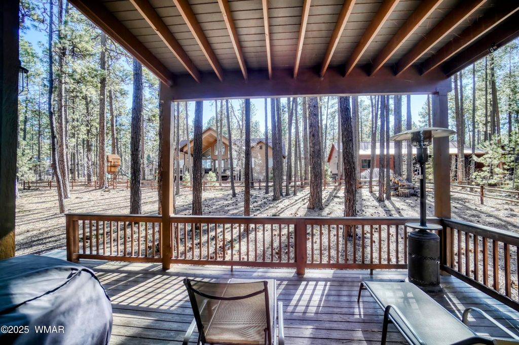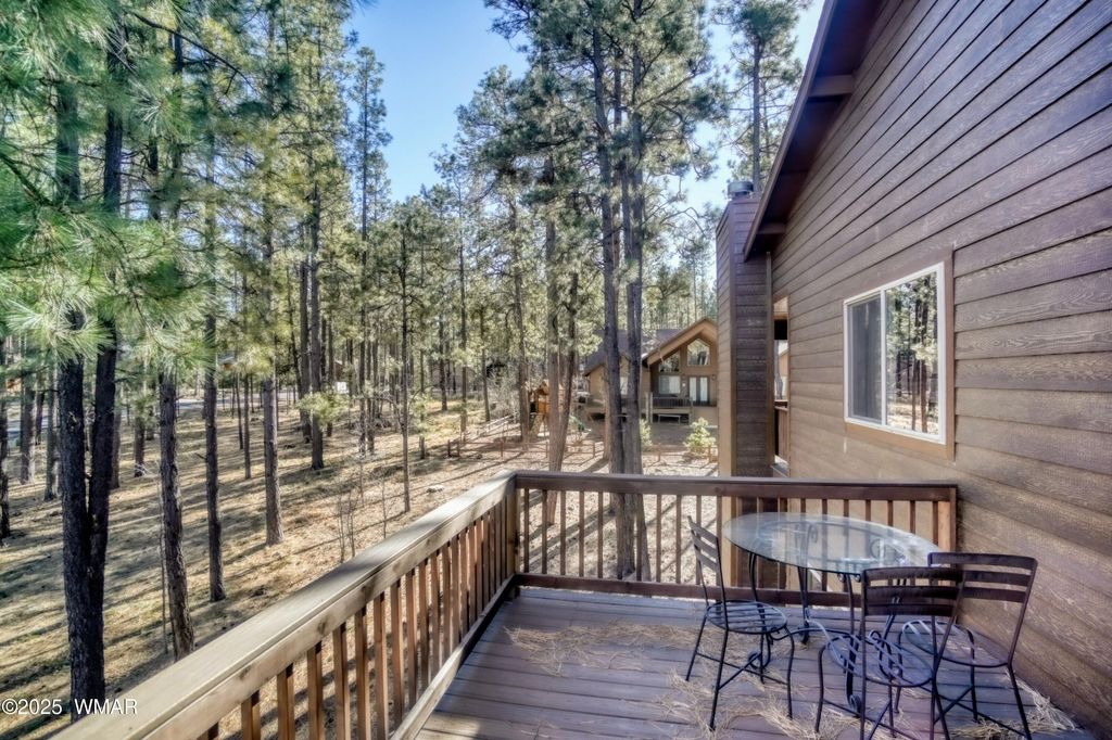 Majestic Mountain Retreat in Starwood Estates. Nestled in the coveted gated community of Starwood Estates near Pinetop Country Club, this custom-built 5-bedroom, 4.5-bath home offers the perfect blend of luxury and nature. Surrounded by the serene beauty of national forest and steps from hiking trails, this property provides a peaceful escape with proximity to golf, fishing, and skiing. Inside, enjoy the elegance of wood floors and thoughtful details throughout. The gourmet kitchen boasts stainless steel appliances, granite countertops, and a tankless hot water system, all complemented by central AC. The spacious main-floor primary suite features a walk-in closet, a spa-like bath with a soaking tub and glass-enclosed shower, , and private access to the expansive covered patio with a cozy wood/gas fireplace. Upstairs, discover a versatile loft/family room, three additional bedrooms including a bunk room that sleeps six- and two full baths. Each upstairs bedroom enjoys its own private balcony with forested views. For added flexibility, a private-entry casita offers a separate living area with vaulted ceilings, a stone fireplace, a kitchenette, dining area, laundry, bedroom, full bath, and covered deck ideal for guests or extended family. Additional highlights: Three-car garage with vaulted ceilings and extra storage. Spacious mudroom/pantry with garage access. Expansive back patio perfect for entertaining, accessible from the dining area, living room, or primary suite. Whether you're seeking a luxurious mountain getaway or a year-round residence, this impeccably designed home delivers elegance, comfort, and adventure in every detail.