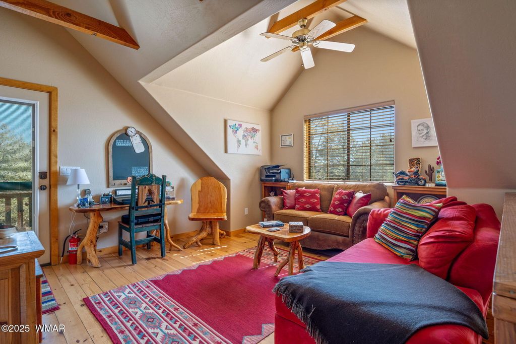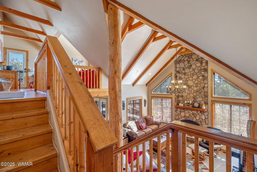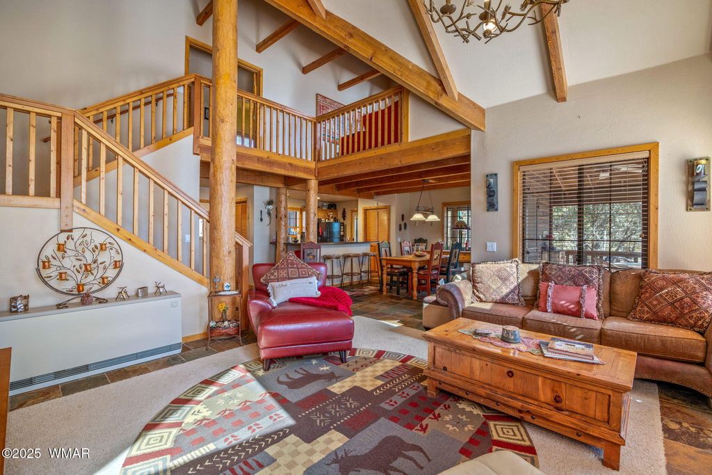 Nestled in the heart of Overgaard AZ, this stunning 2283 SqFt Chalet is the perfect blend of rustic charm & modern comfort on a peaceful .75-acre cul-de-sac lot. This 3 BR/2 BA retreat boasts slate tile & carpet, ceiling fans, custom lighting, custom backsplash in kitchen/baths, vaulted ceilings, central HVAC, exposed wood beams, & walkin closets. Enjoy the floor to ceiling rock-gas fireplace and wood flooring in the loft. There is a large storage attic & the crawl space is heated, & pipes winterized. Above the 2-car garage is a beautifully finished bonus room for possibilities of a game/hobby/office or bedroom. Outside, a wrap-around deck, flagstone patio & driveway with pavers. The new roof is metal & the entire backyard is fenced & nicely treed for privacy. Furnishings are negotiable.