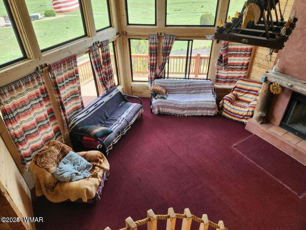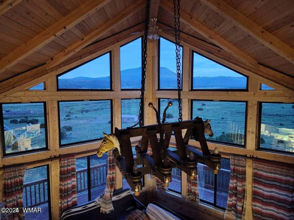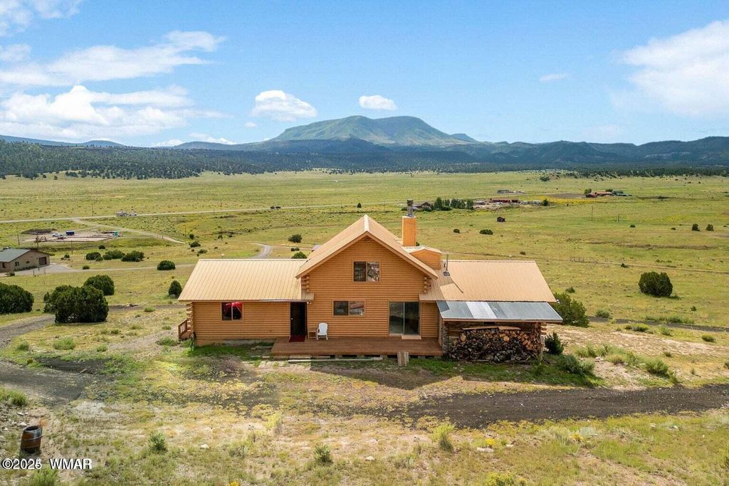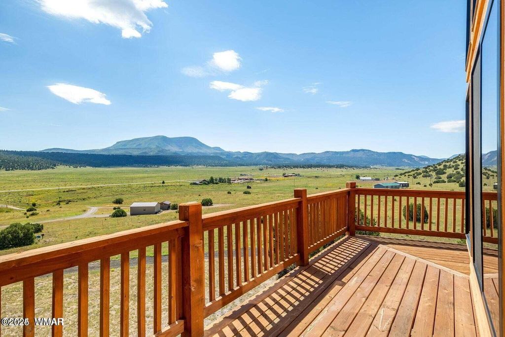 ********JUST REDUCED******** Come visit the notable stuntman's 'Hollywood Cabin' situated on 7+ acres backing to National Forest. Contemplate sitting on the deck with your morning coffee, where you can appreciate the breathtaking views of the Escudilla Mountain Range and the valley below, as well as the wildlife that roam. The cabin is a perfect blend of the original natural charm and modern upgrades, offering floor to ceiling Milgard windows providing breathtaking views and tons of natural light. Enter into a great room featuring a spectacular fireplace for those chilly nights, then flow into the kitchen. The large, separate dining room allows for everyone to gather. The Upstairs loft features a cozy room and 1/2 bath and the same great views. The basement offers separate living quarters, including living room, bedroom and bathroom, with its own access for privacy. The 2-car garage offers more than just parking area, there is room for any DIY'r or hobbyist to set up shop.