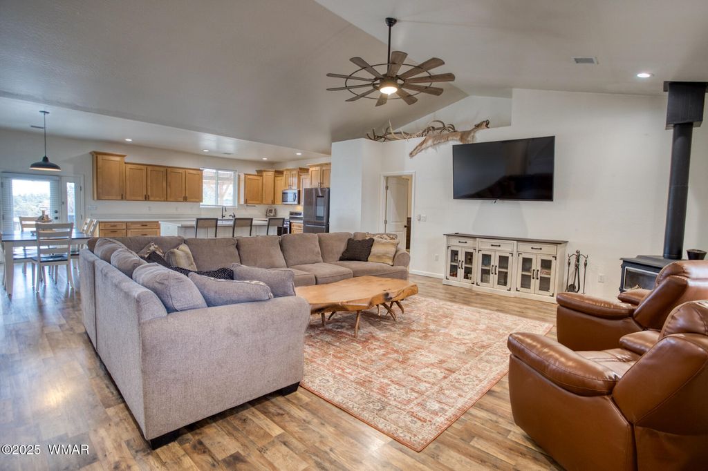 White Mountain Cabin on 1.97 Acres - A True Mountain Home in Linden, this beautiful 3-bedroom, 2-bathroom cabin sits on 1.97 acres of heavily treed land, offering privacy and breathtaking surroundings. Built just 5 years ago, this home is in excellent condition and designed for comfort and style. Step inside to an open-concept living space featuring vaulted ceilings and a gourmet kitchen with quartz countertops, perfect for entertaining. Each bedroom and bathroom is spacious and well-appointed, ensuring plenty of room for family and guests. Enjoy the fresh mountain air from your covered porch and patio, complete with a pagoda, ideal for relaxing or hosting gatherings. A huge 2-car garage provides shop space, and extra room to store all your outdoor gear. Your Mountain Life Awaits!