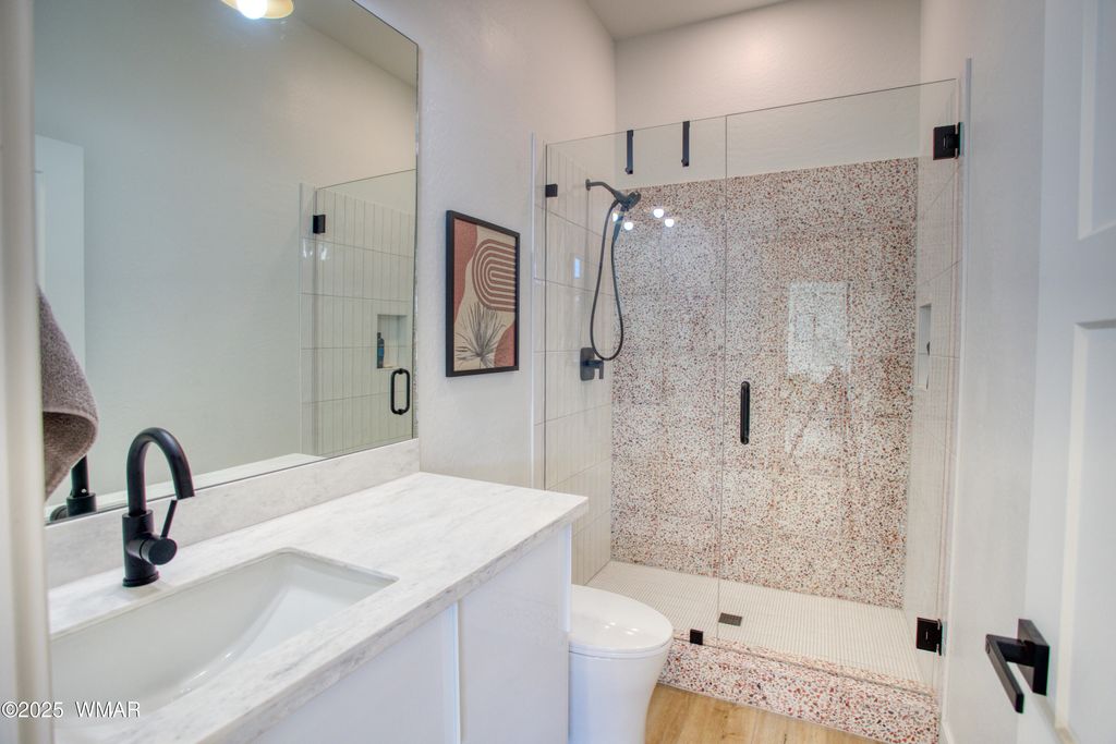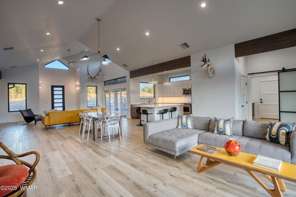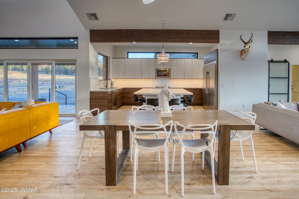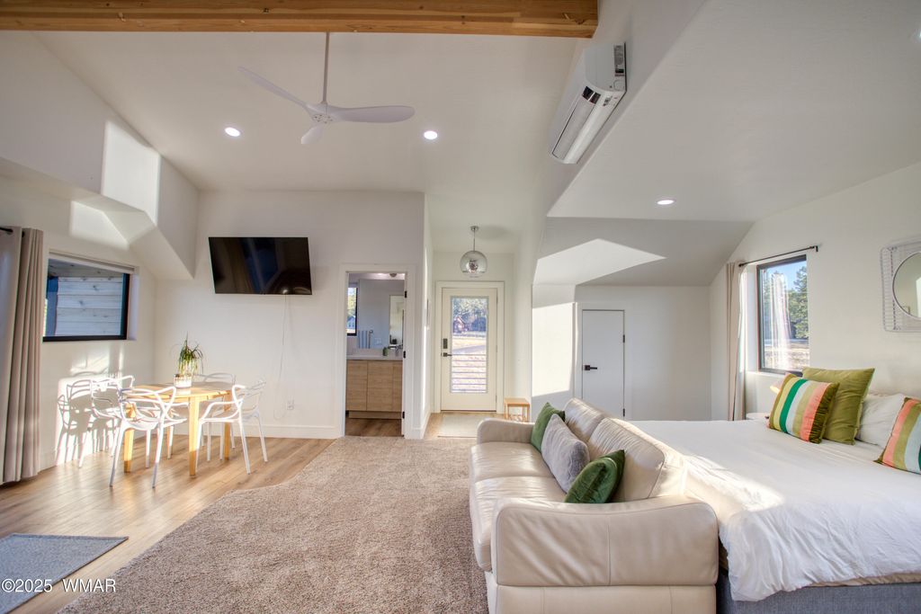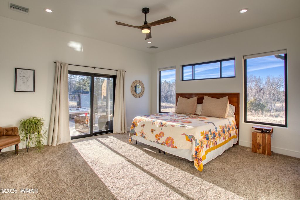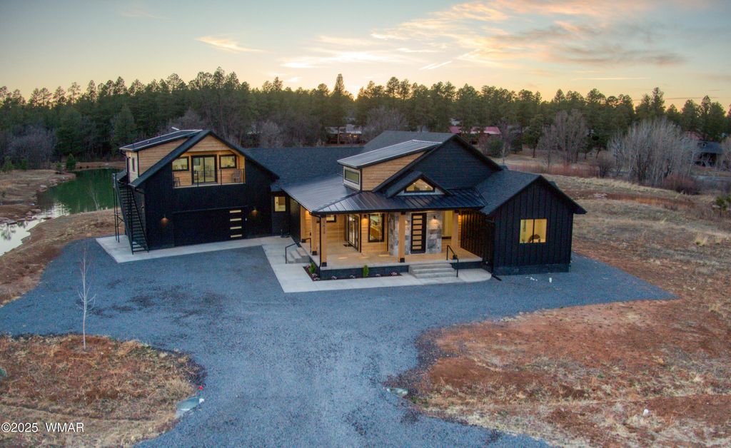 This breathtaking 2023 Modern Farmhouse, offers serene pond views from nearly every window, blending luxury with nature. Nestled on a picturesque meadow in the sought-after Torreon Lakes Community, this home boasts a stylish, low-maintenance exterior featuring Smart Siding, vertical metal panels, a metal-and-shingle roof, and striking cedar accents. Step inside to an open, inviting interior with soaring vaulted ceilings, wood beam accents, and durable plank flooringperfect for families, guests, and pets. The beautifully tiled bathrooms include spacious vanities, while the upgraded spray foam insulation ensures exceptional energy efficiency. The expansive back deck is an entertainer's dream, complete with a built-in MasterSpa "Swim Spa: Endless Pool" that conveys with the property. A unique bonus feature is the separate studio apartment above the garage, currently thriving as a short-term rental. This space offers a studio bedroom with a closet, full bathroom, kitchenette, and a private entranceideal for generating income or hosting guests. Access it from the exterior or conveniently through the main house. Surrounded by ponds and water features, this property is a wildlife enthusiast's paradise, with frequent sightings of elk, deer, geese, ducks and more. The home's four-season appeal shines through with trees encircling the ponds, bursting with vibrant color in fall, while the open meadow landscape frames stunning sunsets year-round. Residents of Torreon enjoy exclusive amenities, including a community swimming pool, spa, workout rooms, family game center, catch-and-release fishing pond, pickleball and basketball courts, and picnic areas. You'll also have membership access to Torreon's 36-hole championship golf course. This home is a rare gemmodern elegance, efficiency, and income potential, all in a magical setting. Don't miss your chance to own this masterpiece! Listing agent is related to owner.