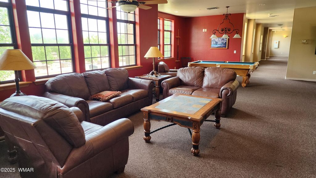 Beautiful condominium in the White Mountains that is fully furnished & turnkey ready as everything stays! This 1 bed/1 bath feels like a 2 bedroom with the spacious den that includes a closet. The unit is on the first floor & can be entered through the front door on the gated covered patio or by the door at the side entrance. Tastefully decorated & in immaculate condition, this condominium has upgraded solid surface flooring, remote ceiling fans, newer stainless appliances, new light fixtures, toilet & shower heads. Lots of extras! Another advantage are the condominiums include an exercise room, game area with billiards & a laundry room. Ranch amenities include a fish & release pond, children's play area, basketball, pickleball & tennis courts. Just a short walk to Bison Town for shops & restaurants. Only a short drive to the National Forest for views of wildlife, hiking, quads, & miles of pines. Much to do or just relax on the covered deck & enjoy the peace.