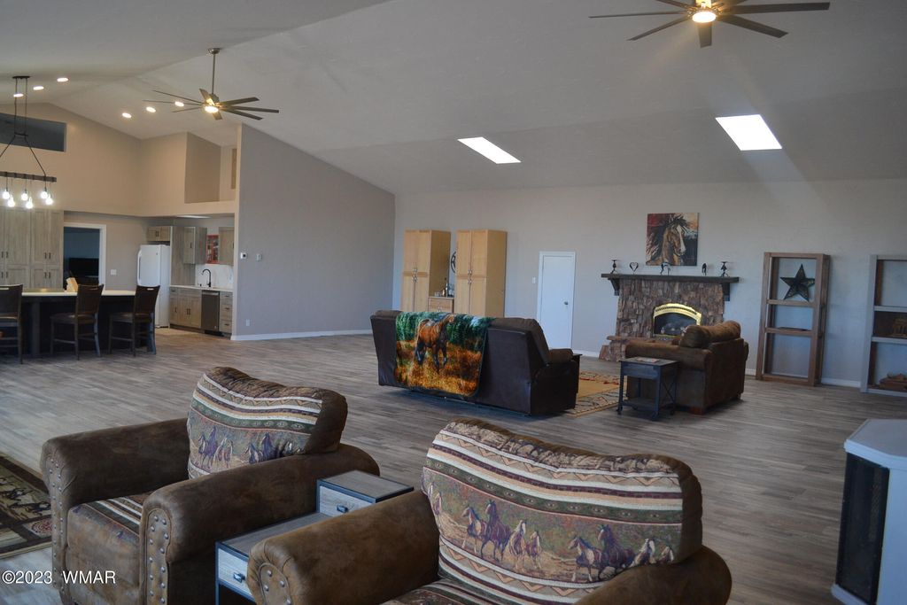 Spacious home on 89.44 acres overlooking rolling hills and Mountains to the South. Remodel includes: kitchen w/large center island , Thor Range w/6 burners, 2 ovens, lots of cabinet storage, dishwasher. Bathroom vanities & mirrors. Solar system w/4 Lithium Ion batteries (the seller was planning on moving the old system down to the shop/garage, it is still in place). New: water tank w/solar auto fill, water well pump, garage door & opener, extra large ceiling fans, light fixtures inside and out, canned lighting in kitchen, washer & dryer. The property also benefits from being fully fenced, w/multiple access areas. A large 80x40x21' Quonset style shop/storage w/2x14' roll up doors & 2 access doors. 2 x lofts. 3 Master Beds, plus 1 x 1/2 Bath. State land to the South. Possibilities abound! Large Master Suite with walk in closet. Staircase to loft area great for storage. Each guest bedroom also has it's own bathroom. Second loft area overlooking the great room. This home has many possibilities, is spacious enough for large gatherings. Private Well - Data: https://app.azwater.gov/WellRegistry/Detail.aspx?RegID=519924