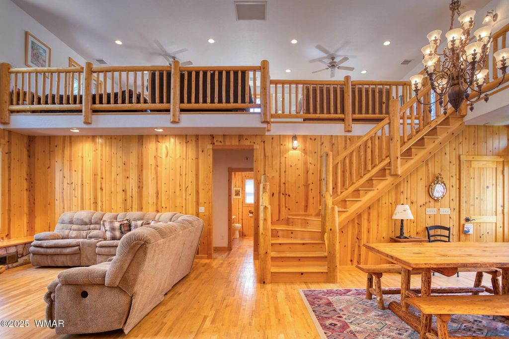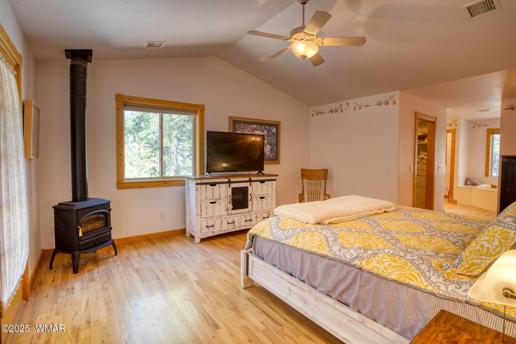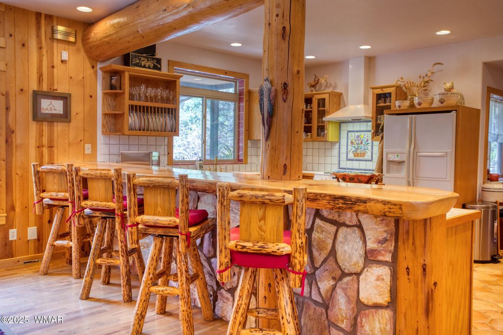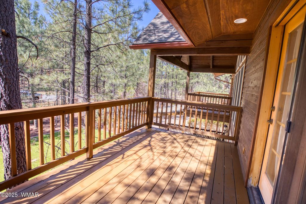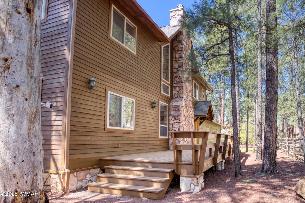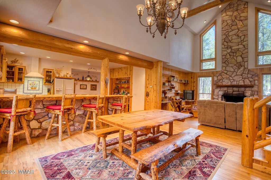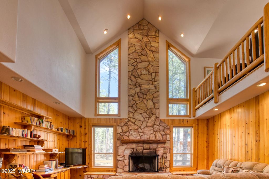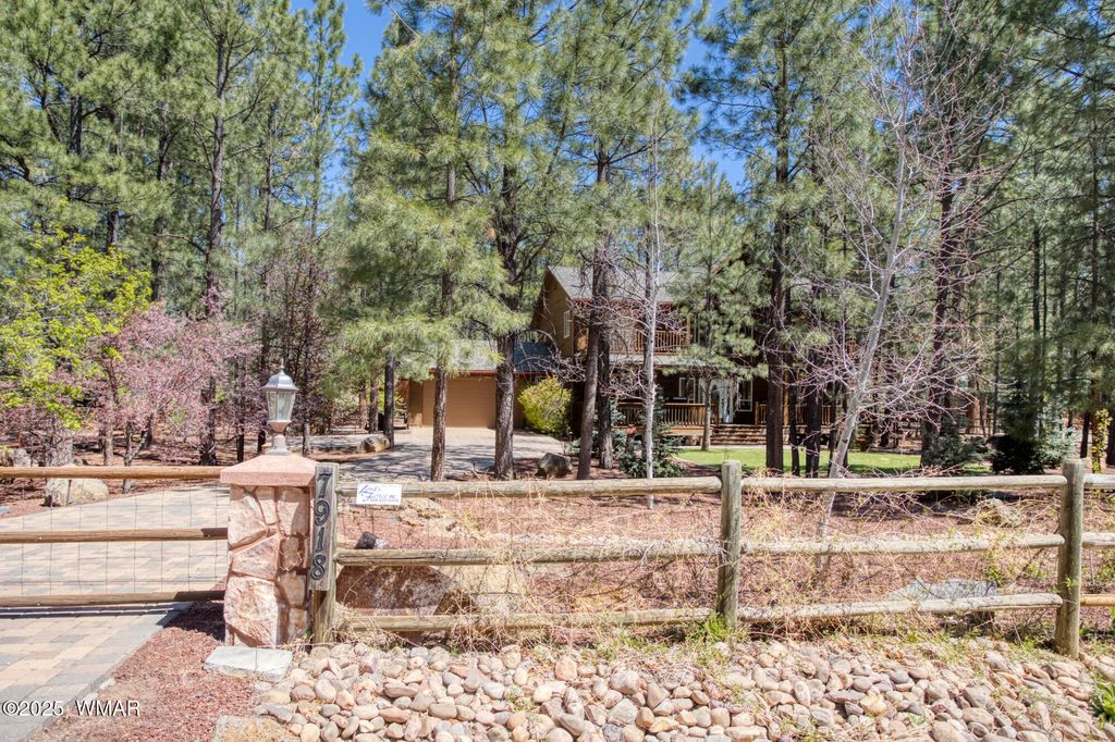 LISTED AT APPRAISED VALUE! Tucked beneath towering pines in the coveted Pinetop Country Club, this custom-crafted mountain retreat offers the perfect blend of rustic charm and modern comfort. Set on a beautifully landscaped and fully fenced 0.45-acre lot with gated entry and a pavered driveway, this 3-bedroom, 2.5-bath home welcomes you with dramatic woodwork, soaring ceilings, and walls of windows that flood the space with natural light. Inside, the great room features a stunning floor-to-ceiling stone fireplace, open loft, and an abundance of warm wood tones that create a cozy lodge-like atmosphere. The spacious kitchen boasts handcrafted cabinetry, tiled counters, a center island, and a breakfast bar perfect for entertaining. A large upper-level loft offers additional living or sleepin space, ideal for guests or a game room. Enjoy morning coffee or evening stargazing from your choice of four private decks, all surrounded by serene forest views. The oversized two-car garage, central vacuum system, and plenty of indoor and outdoor space add everyday convenience to this exceptional getaway. Located just a short distance to Jackson Lake and National Forest access, this home is an outdoor enthusiast's dream and a rare opportunity to own in one of Pinetop's most desirable areas.