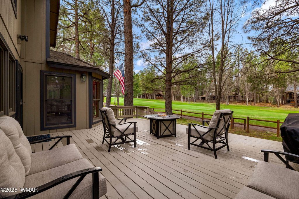 **Newly Priced** There's plenty of room for the whole family in this home! This beautiful home is located in the highly-desired Pinetop Lakes Country Club. The property borders the fairway of the 15th hole, making course access easy! The home boasts 5 bedrooms and 3.5 bathrooms in 3500 sq. ft, with lots of tall pines & great space for spending time or entertaining outside. The home has been well cared for with numerous updates throughout. With an eat-in kitchen, breakfast nook, and formal dining room, the great room is perfect for entertaining. The den/bonus room has a private entrance, providing a quiet spot to work or for storage. There are 2 master suites, both with en suite bathrooms. Guest bedrooms are large and well appointed. Furnishings are included (excluding personal items). The home has been a successful vacation rental for the past year. Interior updates include a remodeled fireplace with TV wall, remodeled master closet, new carpet in the family room & stairs, new kitchen lighting & other lighting fixtures, new paint & drywall repairs, added storage closet in the garage, new programmable thermostats, new ceiling fans, and new TV's and mounts. All décor is new, as well as new bedding and window coverings, and many new pieces of high-end furniture. Exterior updates include a new roof, new deck, new paint, new rear fence with backyard expansion, new patio furniture, Blackstone griddle, & plumbed gas fire table. The HOA Activity center has a swimming pool, 2 hot tubs, tennis & pickleball courts, and lots of monthly scheduled activities. Restaurants and shopping are all nearby. Sunrise Ski Resort is about a 30 minute drive, and numerous trails and wilderness areas are within easy driving distance. The home was setup to be a successful vacation rental, and it remains well rented, so please call before scheduling showings.