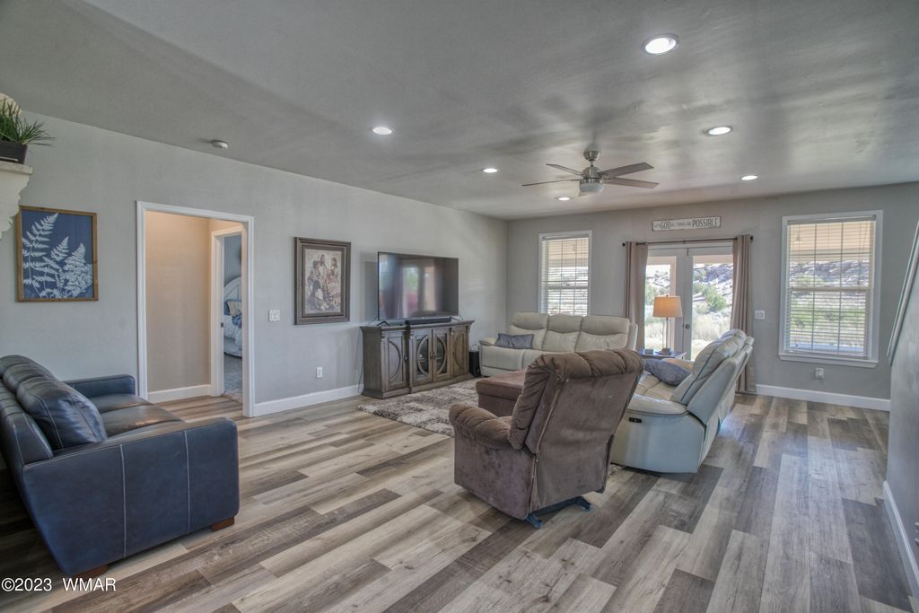 Gorgeous custom 6 bedroom 4.5 bathroom home in Frontier Estates. Home features a formal living room ( or music room), family room, walk in closets, theater room, newer flooring throughout the house as well as newer cabinets and quartz counter tops. Newer backyard landscape too. BRAND NEW ROOF ( April 2025) AC UNIT AND MINI SPLIT unit. All the bathrooms have been remodeled. Located on a great double lot in a double cul de sac close to the Snowflake golf course.
