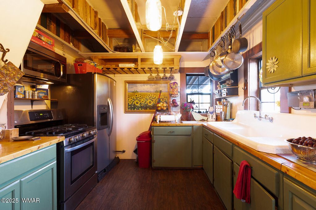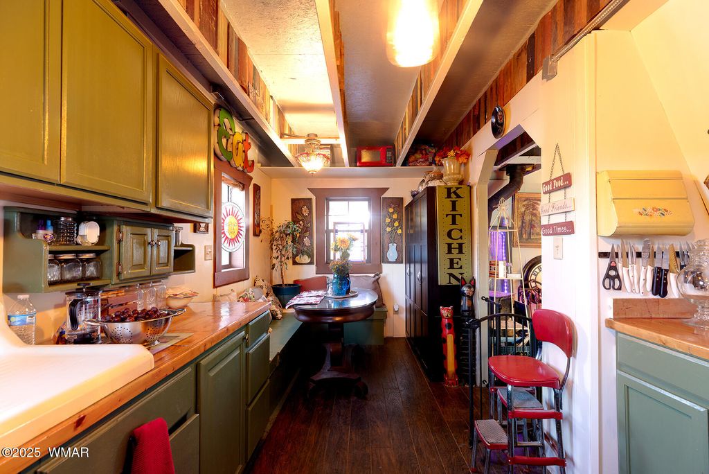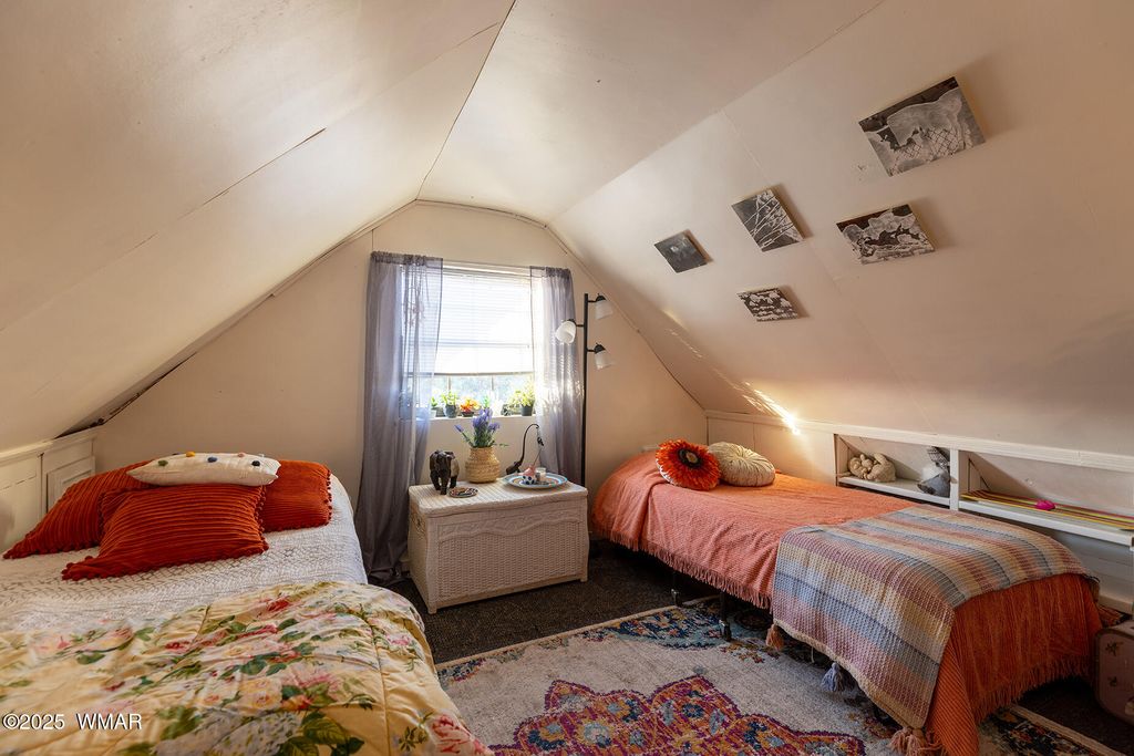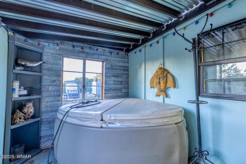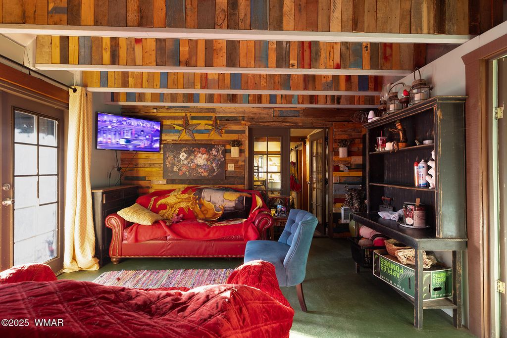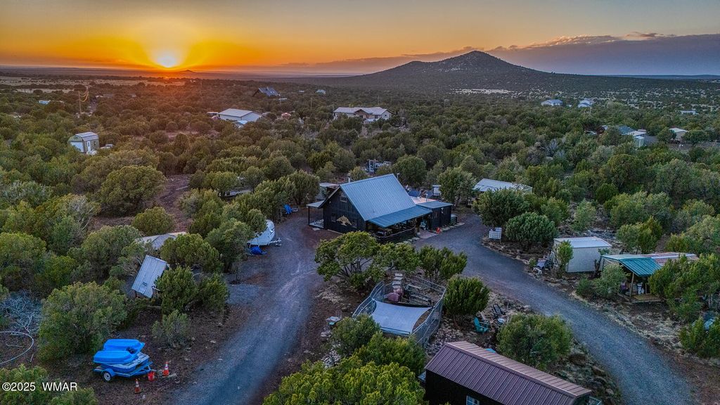 Seller will accept or counter offer between 350,000-375,000. Bring all offers!! Tucked away on approximately 4.99 wooded acres in Vernon, AZ, this charming site-built 2 bed, 1 bath home offers peaceful seclusion, rustic character, and versatile living. The main residence features painted concrete floors throughout and a warm, cabin-inspired interior highlighted by a vintage farmhouse sink that adds timeless appeal. A thoughtfully designed 300 sq ft guest house offers additional living or rental potential, complete with a soaking tub and a stunning stained glass accent wall that creates a colorful, artistic ambiance. Outside, the property offers multiple unique structures, including a cozy A-frame style treehouse, a gazebo ideal for outdoor gatherings, and two bonus buildings perfect for a studio, workshop, or storage. This horse-friendly retreat includes free-hauled water from a community well, and provides the ideal mix of off-grid tranquility with nearby conveniences. Located close to lakes, golfing, and scenic trails perfect for outdoor enthusiasts. A rare and flexible opportunity in Arizona's beautiful White Mountains. Property Features: 2 Bedrooms / 1 Bathroom Approximately 4.99 Acres (Heavily Treed & Private) Site-Built Main Home with Painted Concrete Floors Vintage Farmhouse Kitchen Sink 300 sq ft Guest House with Soaking Tub & Stained Glass Accent Wall A-Frame Style Treehouse Gazebo for Outdoor Relaxation 2 Bonus Structures (Studio/Storage/Workshop Potential) Horse-Friendly Property Free-Hauled Water from Community Well Close to Lakes, Golfing, and Hiking/Biking Trails Power line is buried making for cost effective Maintenace on only one power pole when the time come to replace it. Buyer to verify all material facts.