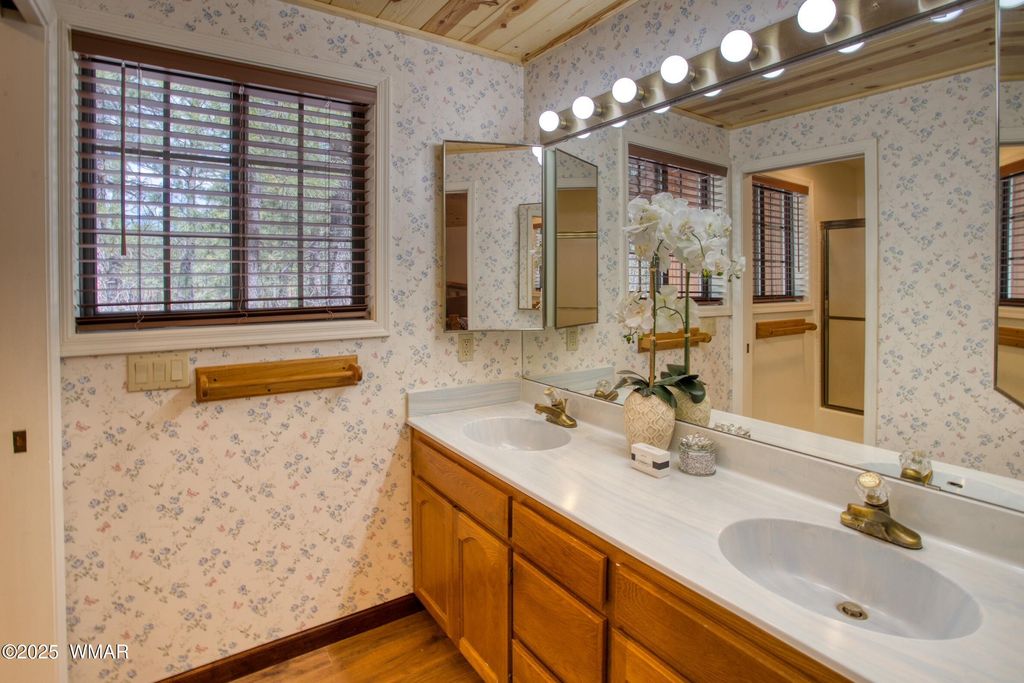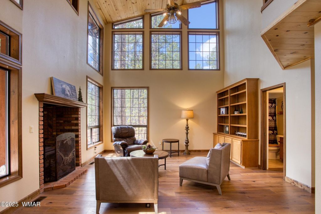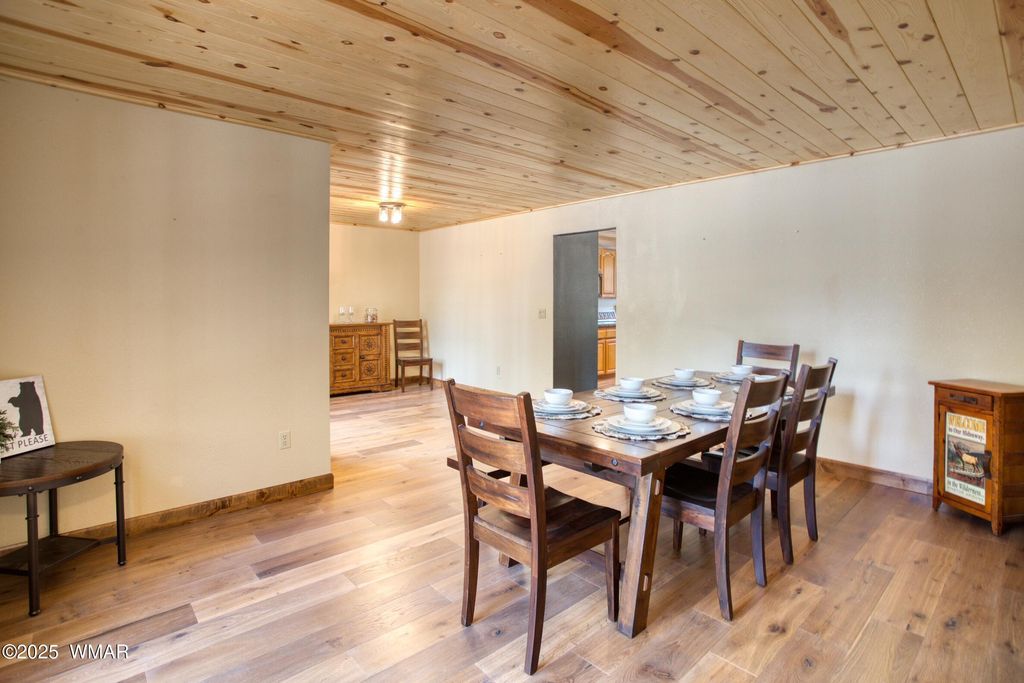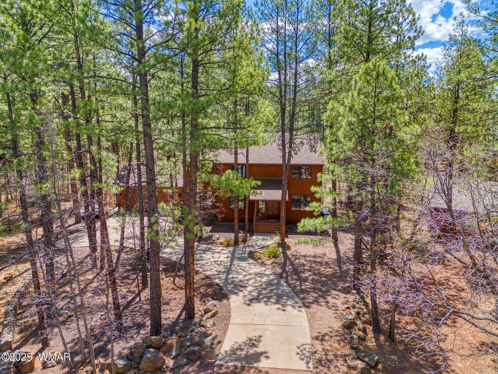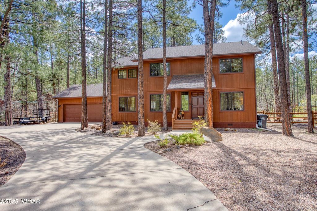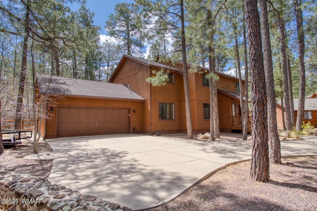 Fully Furnished Cabin Retreat on Nearly Half an Acre in Pinetop Lakes Nestled at the end of a quiet cul-de-sac, this beautifully furnished mountain retreat offers the perfect blend of rustic character and thoughtful modern updates"”all set on an oversized lot just under half an acre in the desirable Pinetop Lakes community. Surrounded by majestic pines, this cabin invites you into a serene, storybook setting ideal for relaxation, adventure, and year-round enjoyment. Step into a warm and inviting great room filled with natural light from large windows, where a classic brick fireplace and wood-burning stove create the perfect ambiance for cozy winter days. The space feels like a snow globe come to life. The open-concept kitchen and dining area are perfect for gatherings, now featuring brand-new granite countertops, natural wood pine ceilings, and updated finishes that elevate the home's authentic mountain vibe. A separate living and dining space provides flexible options for entertaining family and friends or simply spreading out and enjoying the peaceful setting. Step outside into your private, fenced backyard enclosed by custom log pole screeningperfect for soaking up the mountain air, hosting outdoor meals, or simply unwinding in the cool shade of the towering pines. Key Features: " Fully furnished and move-in ready " Two-car garage " Newer roof for peace of mind " Exclusive access to Pinetop Lakes Recreation Center " Minutes from National Forest trailsideal for hiking, biking, and exploring in all seasons