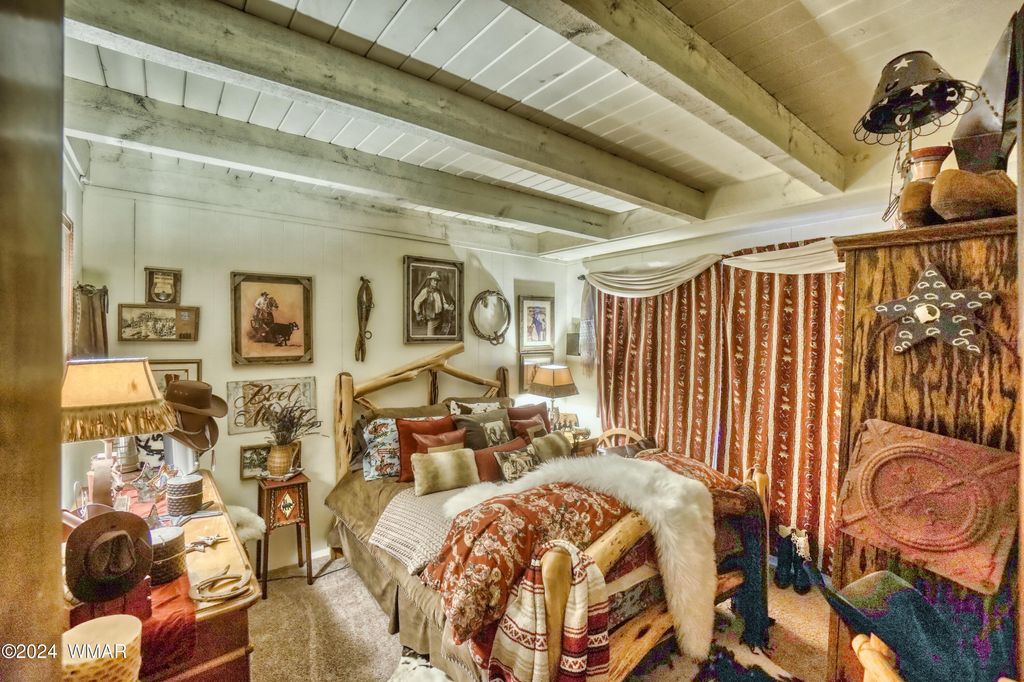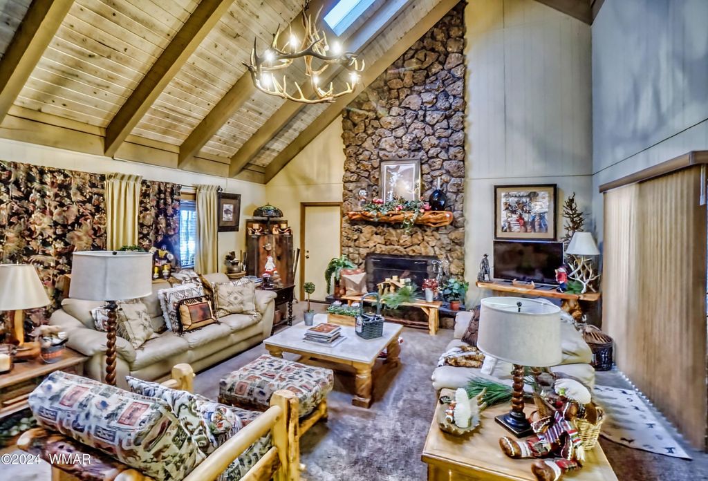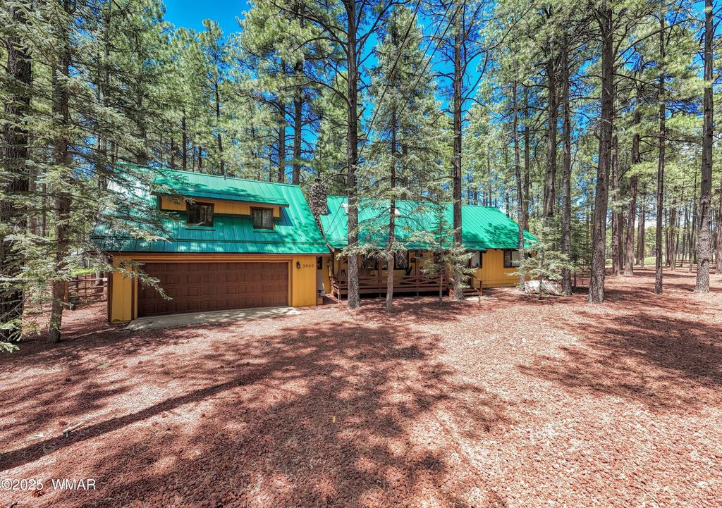 LOCATION ! Prime Pinetop Country Club Cabin Retreat! Discover a cozy cabin nestled at the end of a quiet cul-de-sac on an expansive fairway lot. This charming retreat offers 4 bedrooms, 3 baths, and a large loft. The main level features 3 bedrooms, 2 baths, and a beautifully remodeled kitchen with stainless steel appliances, all under vaulted T&G ceilings. Enjoy the warmth of a stunning rock fireplace or unwind on the spacious Trex deck with sweeping fairway views. A private casita above the garage"”complete with a kitchenette, full bath, and deck"”is ideal for guests. Metal roof and two car garage. The large lot offers endless possibilities, this property is a dream mountain escape!