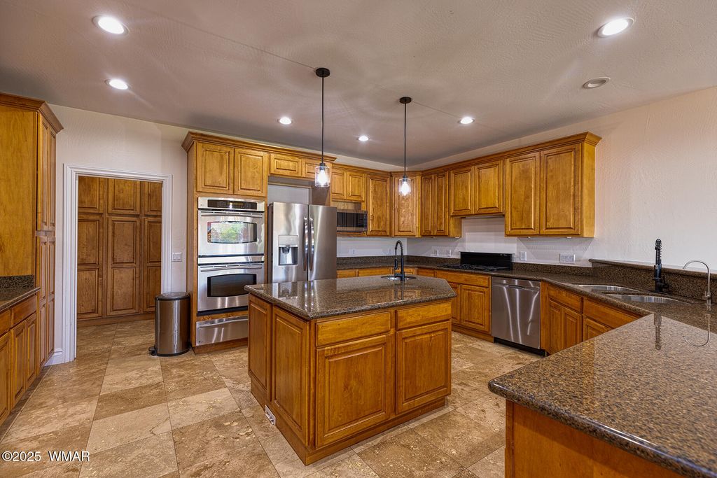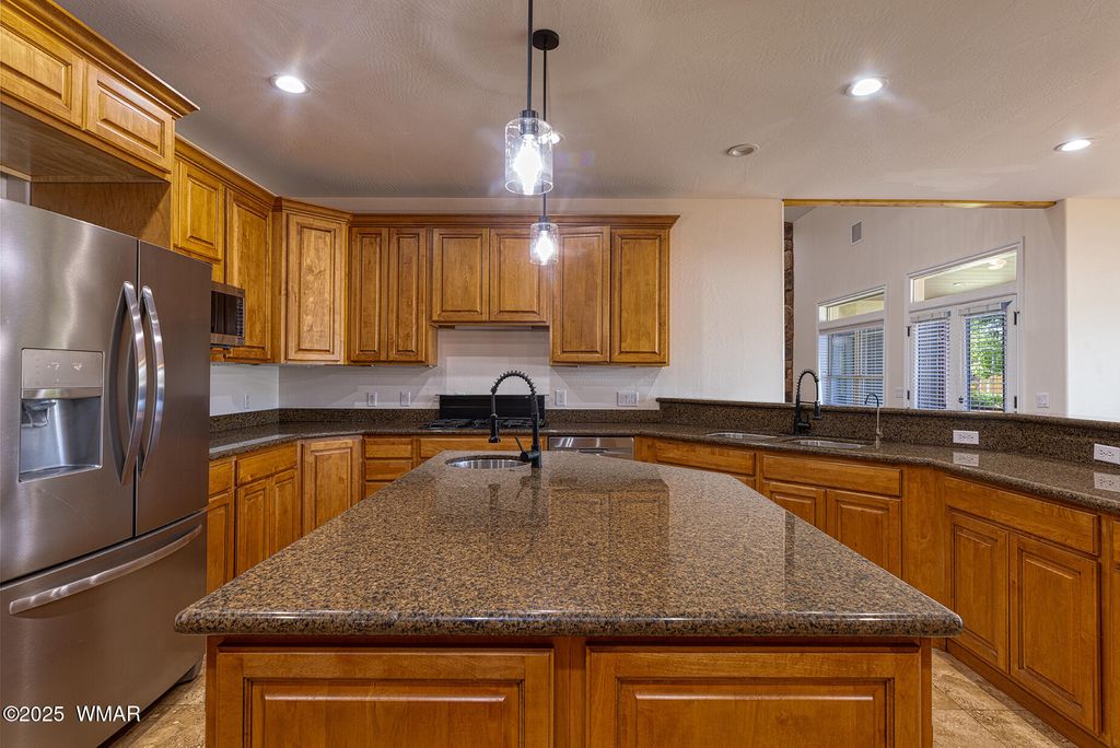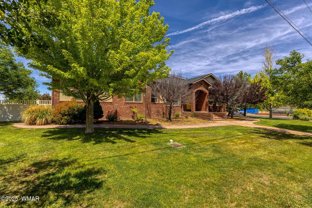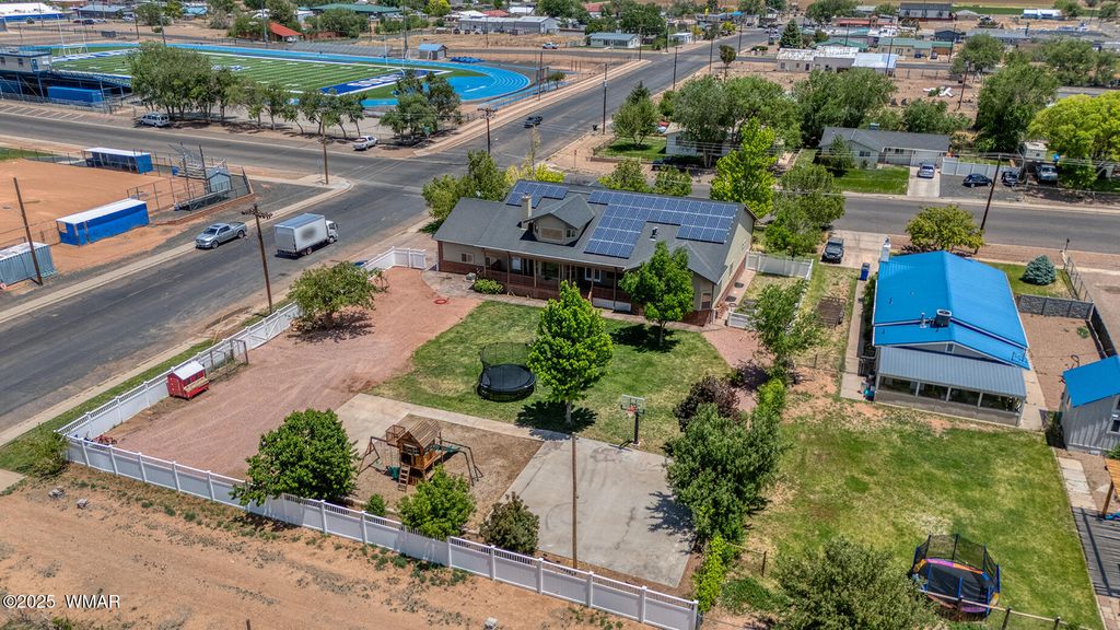 Once-in-a-lifetime opportunity to own one of Snowflake's finest homes, right in the heart of town! This 7 bed, 4.5 bath brick beauty offers a spacious, family-friendly layout with a fully finished basement featuring a weight room and massive playroom. Enjoy dual laundry rooms, abundant storage, oversized living spaces, a piano room, and a dedicated office. The kitchen is a dream with a wraparound bar, island, double ovens, updated appliances, and a generous dining area that overlooks the beautifully manicured backyard. The spacious primary suite includes large windows, a walk-in closet, soaking tub, and step-in shower. Outside, the lush oversized lot features fruit trees, a playground, garden space, and room for animals. Owned solar system keeps electric bills incredibly low. 3-car garage includes a built-in dog washing station. Just steps from schools, ball fields, shopping, and dining!