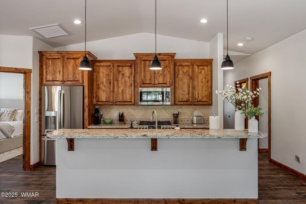 Tucked among the towering Pines of Greer, this brand-new 2-bedroom, 2-bath home offers a perfect balance of modern comfort and rustic charm. The open-concept layout features a stylish kitchen with stainless steel appliances and a spacious living area designed for relaxing or entertaining. In the primary suite, a soaking tub overlooks the surrounding forrest, complemented by a separate walk-in shower for added luxury. The oversized garage easily accommodates two large trucks with plenty of space to spare, and a backup generator ensures you're always prepared, no matter the season. Whether you're looking for a full-time residence or a serene weekend getaway, this home delivers both beauty and peace of mind in the heart of the mountains.