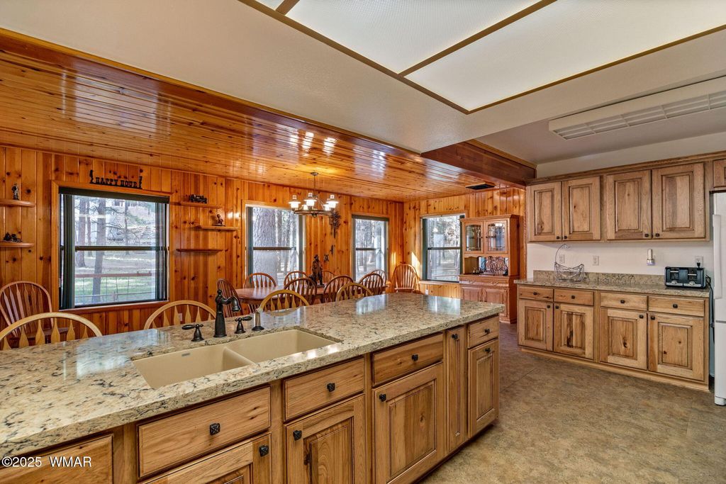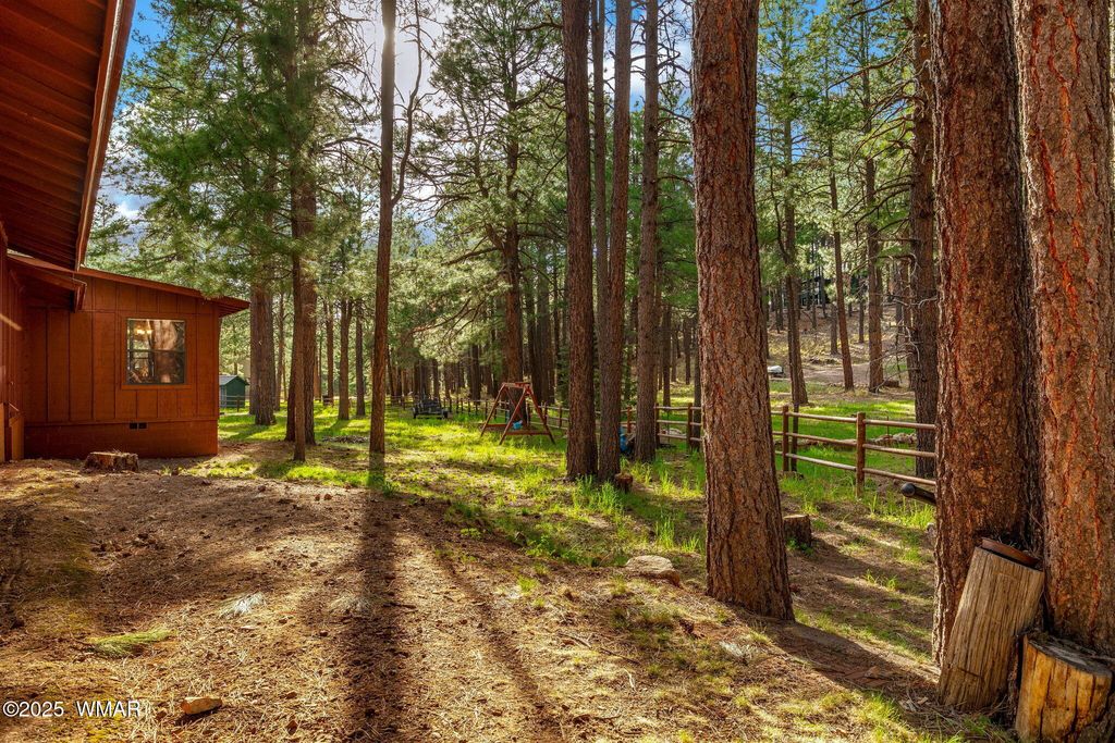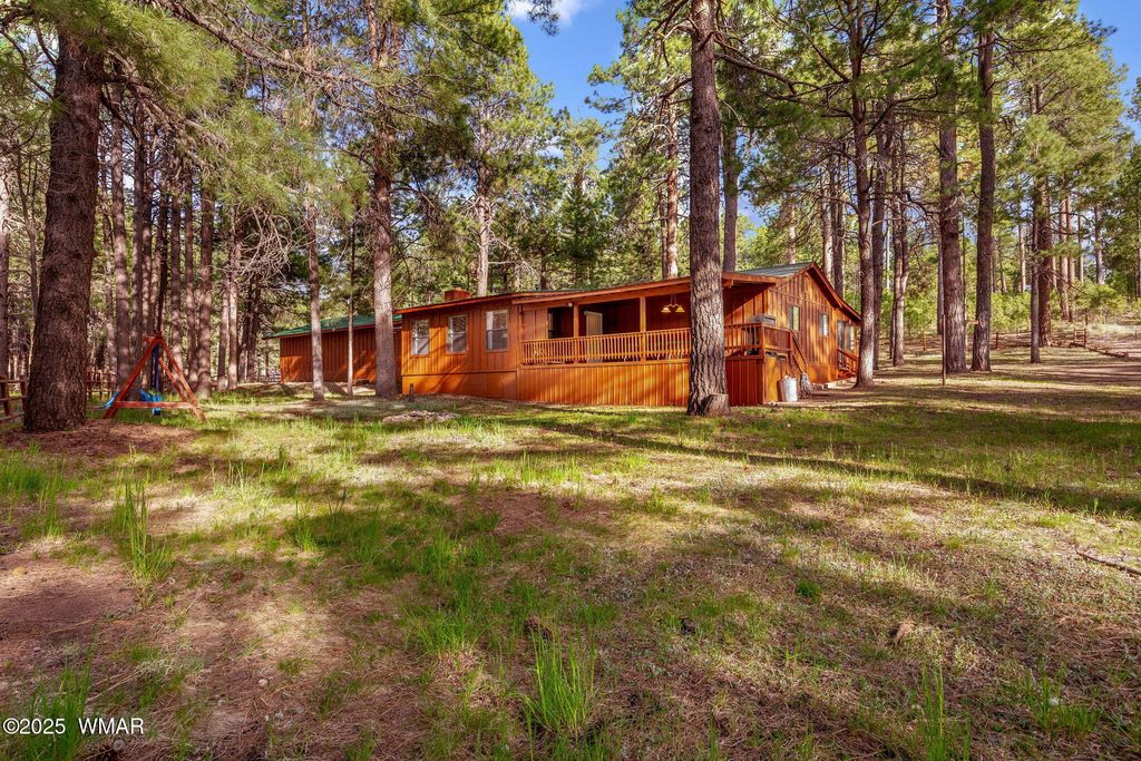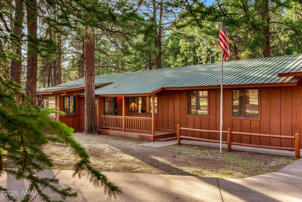 Forest Lakes Cabin on 1 Acre with Large Garage across from the Sitgreaves National Forest. This is a rare opportunity to own a cabin on a full acre in Forest Lakes, located just across the road from Sitgreaves National Forest. The 3-bedroom, 2-bathroom home features a functional layout with an additional family room and an Arizona Room currently being used as an extra bedroom. This wooded lot offers tall pines, a circular driveway, and multiple outbuildings including a large storage shed. A HUGE garage provides plenty of room to store recreational equipment, tools, or toys. Located just minutes from Woods Canyon Lake and Willow Springs Lake, this home is ideal as a summer getaway from the heat.