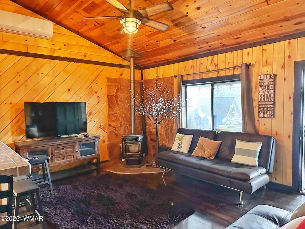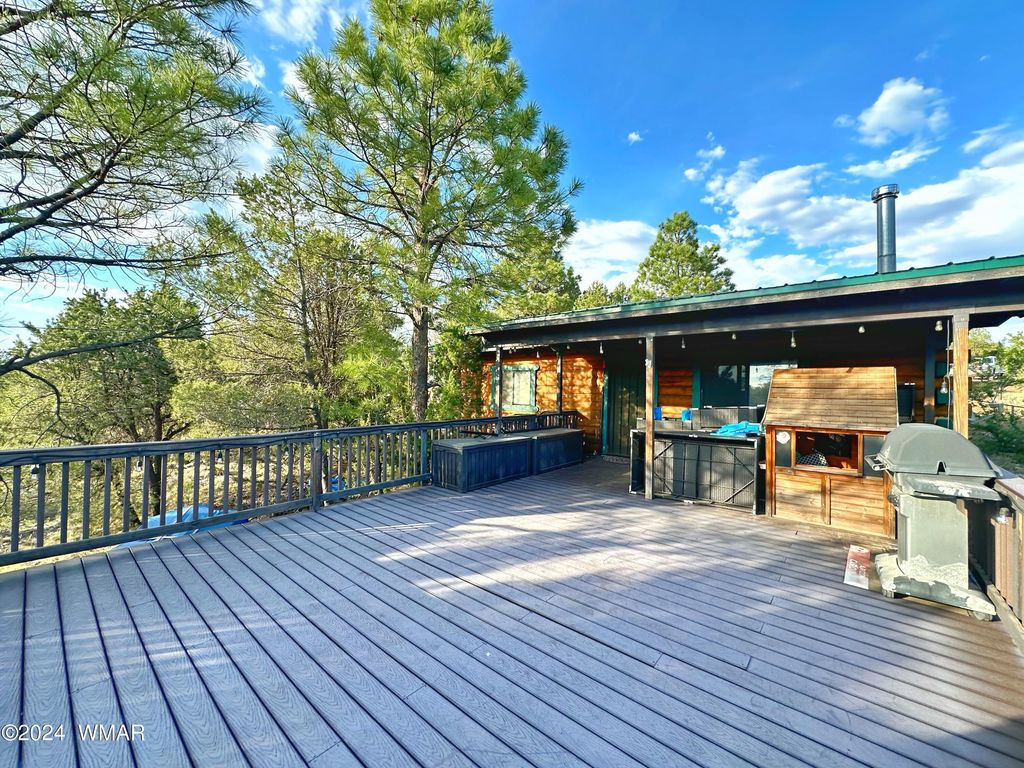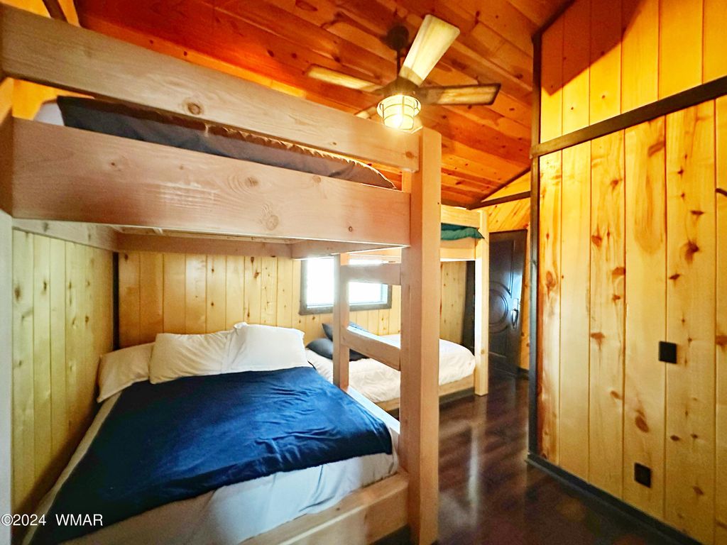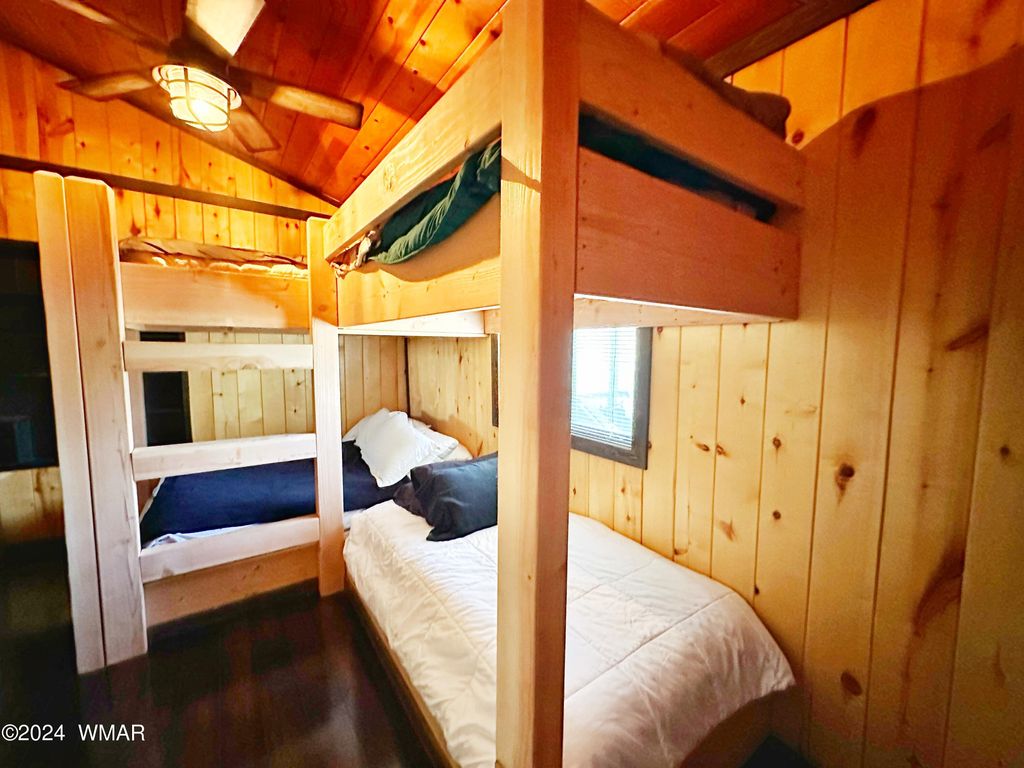 Get ready to escape the heat and start living your best mountain life in this fully furnished, 2bd/2ba log cabin nestled among the pines! The interior features knotty pine T&G, laminate flooring throughout, efficient mini-split, and pellet stone for the winter nights. Kitchen has a breakfast bar and ample cabinet space. Bedrooms are spacious and include custom bunk beds for plenty of sleeping areas. Bathrooms feature custom tile showers. Exterior boasts a metal roof and huge trex deck to enjoy your morning coffee and summer nights. Do not wait so come take a look today!