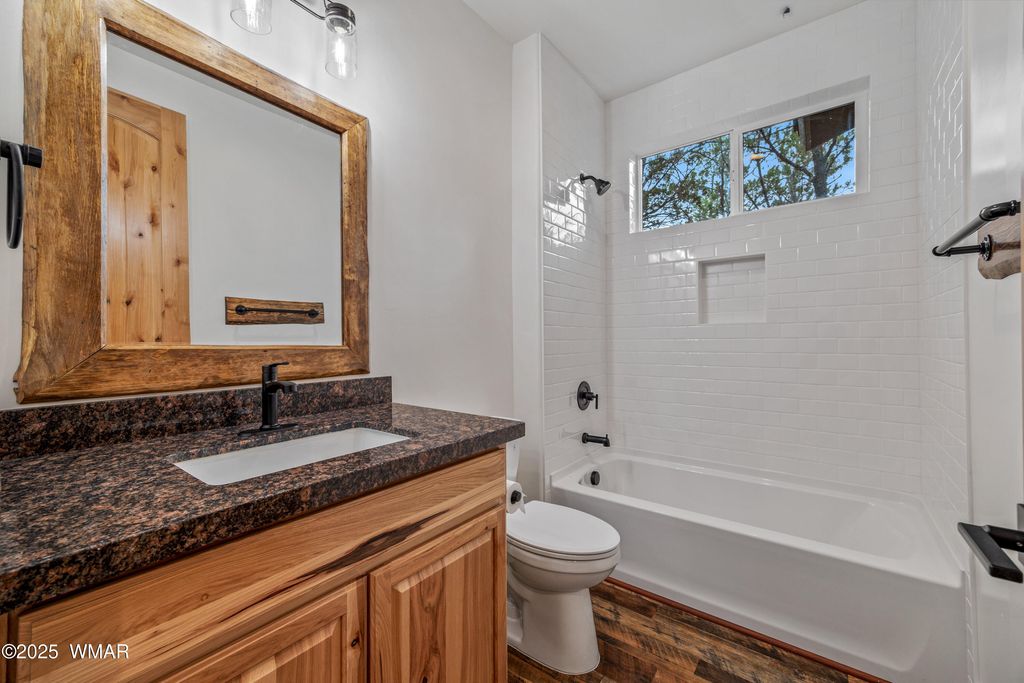 New Construction all electric 3 BR/2 BA cabin nestled on 0.81 acres in the Mogollon Estates in the Rim Community of Overgaard. The cabin will feature a great room design with T&G ceiling and fireplace, a large kitchen with an island and granite countertops, ceiling fans, central heat and air conditioning, a laundry/mud room, a generous master bedroom with an en-suite master bathroom, and generous size guest bedrooms. The exterior will boast covered decks, smart siding and a two-car garage. This lot very nicely treed on a cul-de-sac corner lot in a coveted area of Overgaard with easy access to the Forest. The photos are an exact duplicate except will have a fireplace and T&G ceiling in the great room.