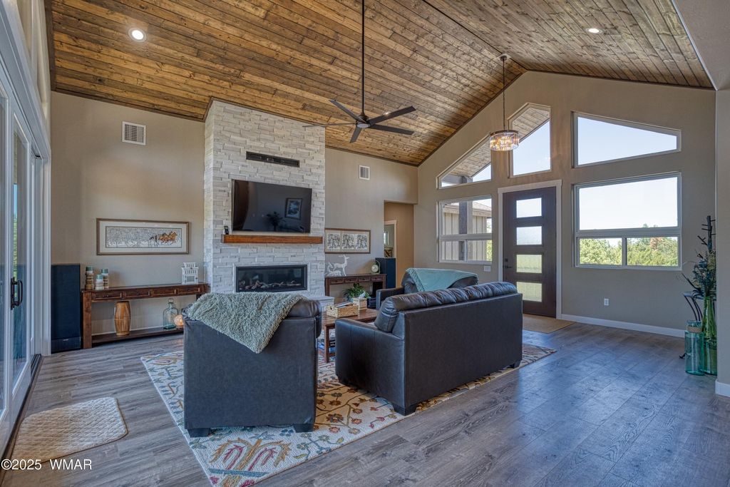 This BEAUTIFUL RETREAT located in Torreon, has so much to offer. The large .85 of an acre offers privacy while sitting on the back patio watching the wildlife stroll by. Large covered patio w/ treks decking w/ iron railings that leads to small dog run below, 2 car garage w/ extra 4x15.75 space to accommodate toys, 220v hookup in garage for electric vehicles, 3 bedroom 3 bath split floor plan, butler pantry, hot water dispenser in kitchen, tankless water gas heater, soft water, large back windows w/16x8 sliding back doors, large front door with glass inserts for lighting, granite to the floor center island, tongue/Groove ceiling, and extra large and long space below home for a work station or extra storage Marble floor to ceiling fireplace, and a nice size laundry room with a sink.