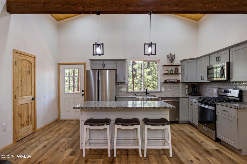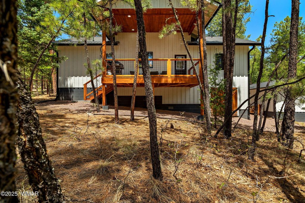 *** Price Reduction*** Modern mountain retreat in the heart of Alpine, Arizona! This nearly new, fully furnished 3-bedroom, 2-bath home offers a rare blend of style, comfort, and functionality"”perfect for year-round living or a peaceful escape to the pines. Located in the desirable Alpine Village East community, this modern farmhouse features a spacious split floor plan with high ceilings, solid pine doors, and custom flooring throughout. The crisp colored kitchen boasts granite countertops, gray-toned cabinets, a farmhouse sink, pantry, and new stainless steel appliances including a gas stove. A cozy, floor-to-ceiling rock fireplace anchors the great room with warmth and charm. The luxurious primary suite includes a large walk-in closet, dual sinks, and a dual-head custom-tiled shower. Step outside to enjoy front and back covered patios where elk and deer frequently visit one even gave birth just steps from the back deck! The landscaped yard is framed by tall pines, and the walk-in crawl space provides ample storage beneath the home. Additional features include a single-car detached, fully finished garage, a brand-new backup generator, dual-pane windows with blinds, and a laundry room with a new washer and dryer. Situated just minutes from restaurants, shops, and outdoor recreation, and only 40 minutes from Sunrise Ski Resort, this home is a true outdoor enthusiast's paradise. Lakes, streams, rivers, hiking, biking, hunting, and fishing are all nearby. Turnkey and move-in ready don't miss your chance to own this slice of paradise in Alpine!
