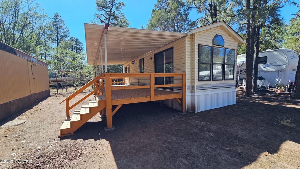 With purchase, 1 Year Free Lot Rent. Financing Available(30% Down). Come see this comfortable, move-in-ready home in a peaceful, revamped family park in Show Low, AZ. Ideal for year-round living, the community offers tranquility and easy access to outdoor fun. Features include brand-new flooring, a covered deck perfect for relaxing outdoors, and a home warranty for added security. Lot rent is just $485/month + utilities, with a quick background check required. Located within walking distance to Rainbow Lake for fishing, swimming, and kayaking, and close to shopping, restaurants, and outdoor adventures. Experience the best of Show Low"”nature, convenience, and community all in one! 12X34 Park Model - Seller is a license AZ Real Estate Agent. Lot Rent is $485/month.