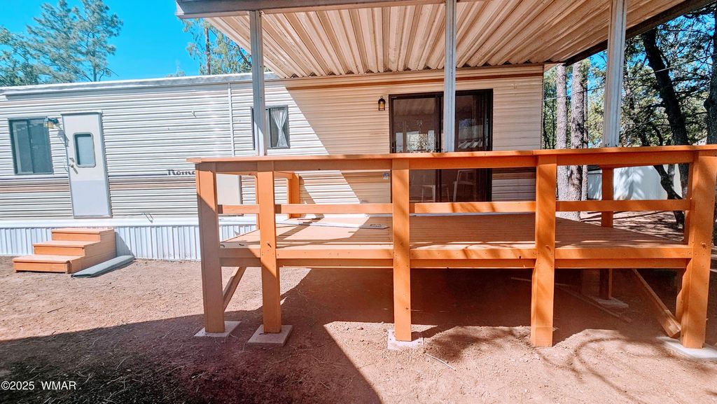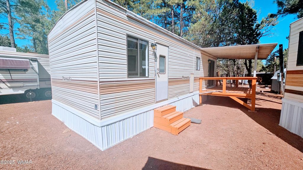 With purchase, 1 Year Free Lot Rent. Financing Available(30% Down). Come see this comfortable, move-in-ready home in a peaceful, revamped family park in Show Low, AZ. Ideal for year-round living, the community offers tranquility and easy access to outdoor fun. Features include brand-new flooring, a covered deck perfect for relaxing outdoors, and a home warranty for added security. Lot rent is just $485/month + utilities, with a quick background check required. Located within walking distance to Rainbow Lake for fishing, swimming, and kayaking, and close to shopping, restaurants, and outdoor adventures. Experience the best of Show Low"”nature, convenience, and community all in one! 12X34 Park Model - Seller is a license AZ Real Estate Agent. Lot Rent is $485/month.