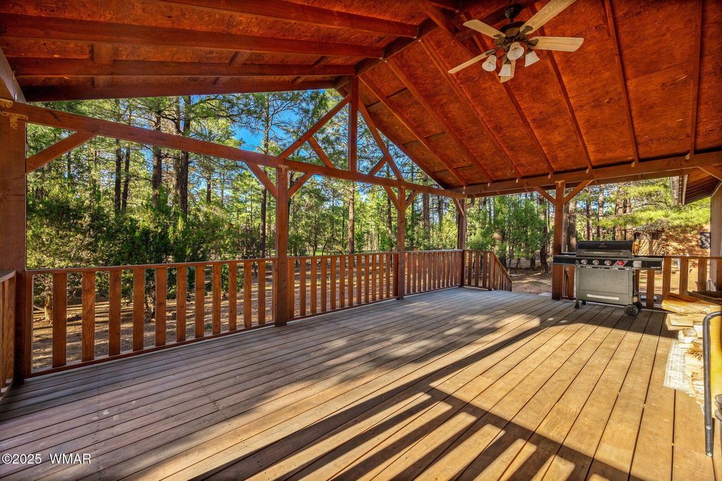 Nestled among towering tall pines in the desirable Forest Trails community, this custom-built 4 bedroom, 2 bath home offers 2,019 sq ft of beautifully designed living space. Featuring vaulted ceilings and an open floor plan, the home is bright, spacious, and welcoming. Enjoy new flooring throughout and a stunning stone-faced wood fireplace surround. The large kitchen boasts tons of storage and abundant counter seating"”perfect for gatherings. The master bath includes a Jacuzzi tub and step-in shower, while the second bath is a convenient Jack and Jill layout. Radiant heat and a wood fireplace keep you cozy year-round. Recently stained in 2024, the home also offers a covered porch, tastefully landscaped yard, and boasts oversized two car garage w/ built-in storage cabinets. A circular etc.. paved drive adds charm and convenience. Located on a county-maintained paved road with a nominal HOA to protect your investment, this is mountain living at its finest!