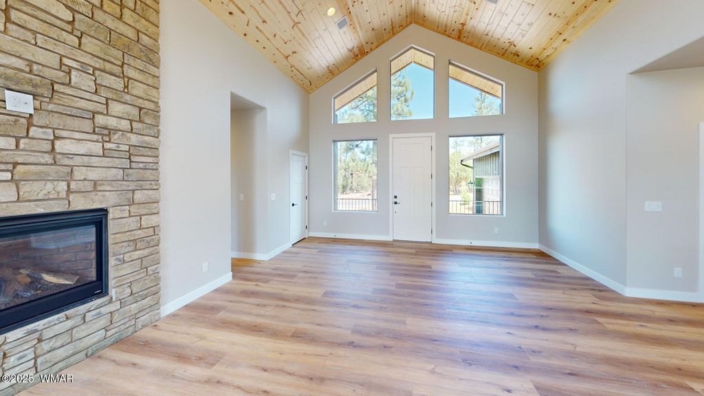 New custom home in the Torreon-Lakes community, built by Dean Allen. This 3-bedroom, 2-bath home offers an open-concept layout with vaulted ceilings and a gas fireplace, creating a bright and functional living space. The kitchen includes a large pantry and plenty of counter space, while the private primary suite offers a quiet retreat. LP Smart Siding with black accents and Trex decking provide low-maintenance outdoor living in a beautiful mountain setting. Energy-efficient construction and quality finishes throughout make this home ideal for full-time living or a seasonal getaway. Located in one of Show Low's most desirable communities with access to Torreon amenities, including golf, fitness, trails, and more. Move in Ready