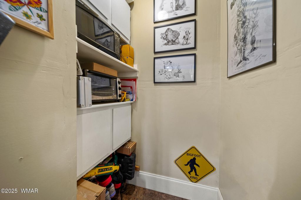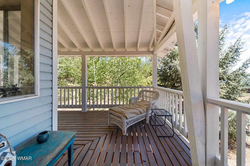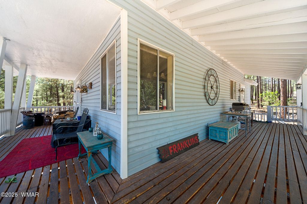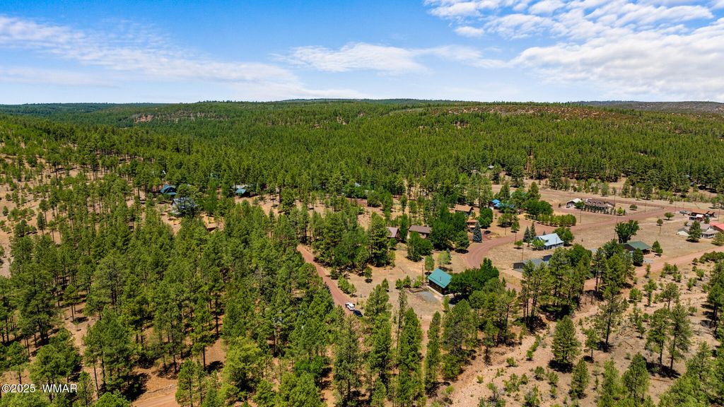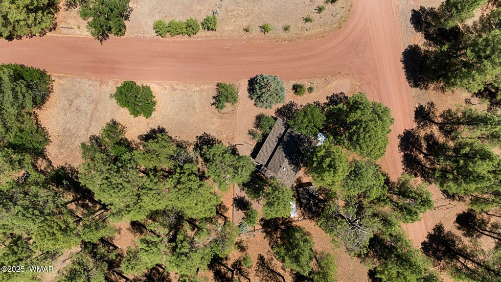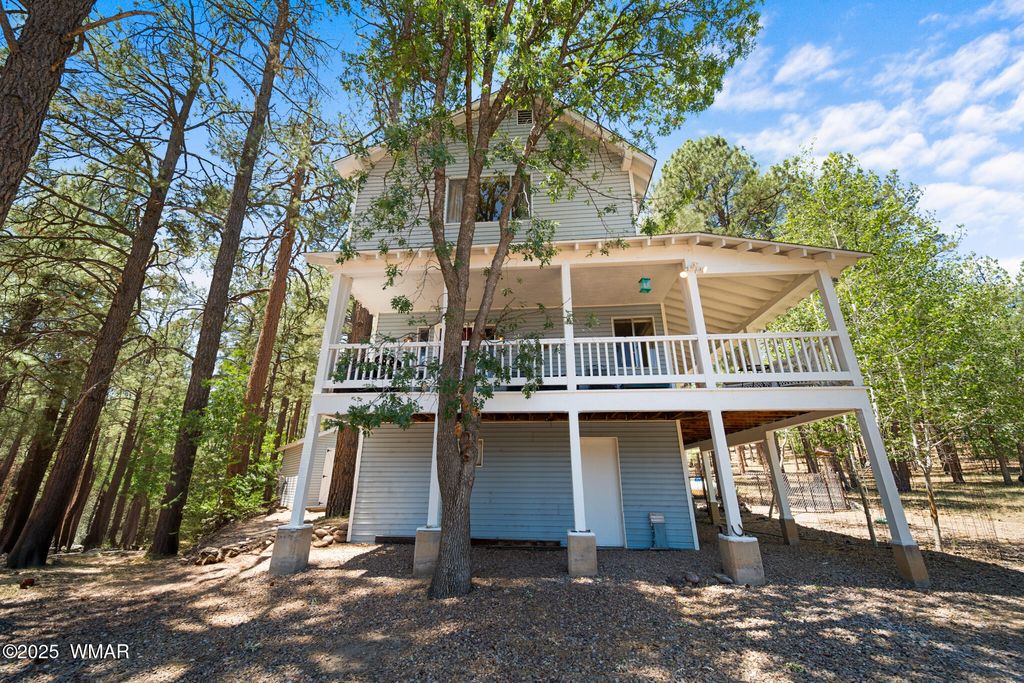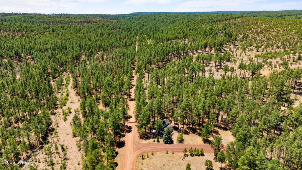 Fully Furnished! Don't miss this rare opportunity to own your very own cabin surrounded by nature and the National Forest right out your back yard- no neighbors. Perfect for full time residency, short term rental opportunity or escape the heat every chance you get. Features 2 bedrooms with views of the tall pines and 1 bath upstairs, an additional full bath downstairs, a cool man cave on the first floor with a garage roll up door for your toys. Cozy up to the fireplace on cool mountain nights, sip coffee on the front porch and enjoy the sunrise. The home has a new roof installed in the fall of 2024.