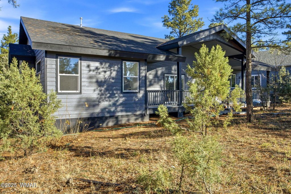 Wow attention to detail fills this Custom 2025 New Build in the heart of Show Low AZ! Large open living room with vaulted ceilings. Open kitchen featuring new high end touch-free GE appliances. Quartz counter tops. Split floor plan. Primary bedroom has private entrance to back covered deck. Primary bathroom features a custom tile shower and dual sinks Huge walk in closet! Guest bath has granite tile to enhance the custom feel. Oversized two car garage. Large inside laundry room Fully covered front and back decks to enjoy the four seasons in the White Mountains. Don't miss the opportunity to be the first owner of this beautiful home!