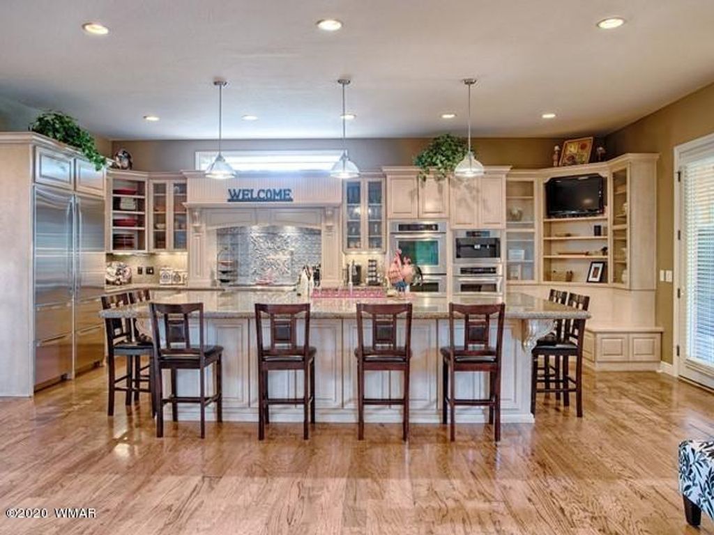 This beautifully built home sits on the #17 of the cabin course, It offers 6 bedrooms (4 suites w/ baths and 1 with no closet), 7 bathrooms (2 are 1/2 baths), separate office with built ins, upstairs media room w/ kitchen setup and its own balcony, extra large great room, separate dining room, extra large kitchen with all the upgraded appliances. Kitchen island that will fit 8+ people, screened in sun room, two stair cases to the upper level, owners bedroom down w/ own see through fireplace and separate sitting room, walk in closet, Jacuzzi tub. Granite through out, wood floors, grand stone faced fireplace in living room, three car garage, extra large laundry room with storage cabinets and sink, tankless water heater, alarm system. Driveway has extra parking for your guests.
