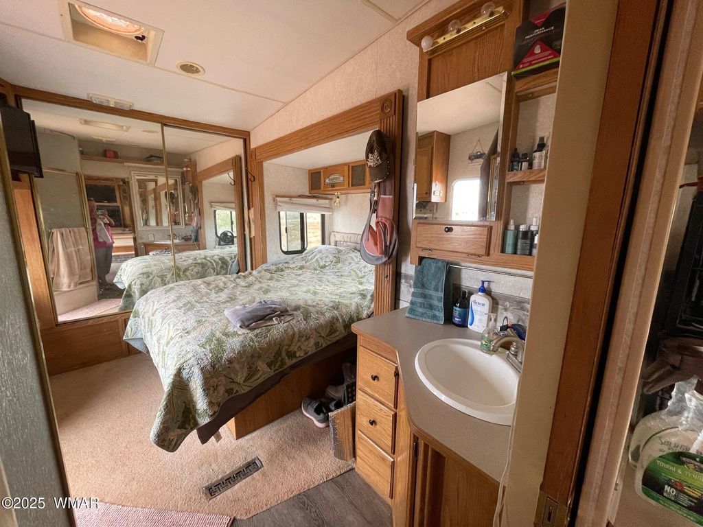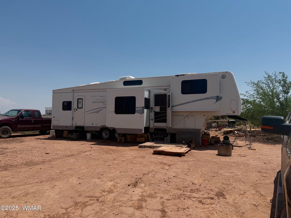 This homestead is ready to go! 4-season 2004 Wilderness Adv AZ6 5th Wheel with newer 7kw Onan generator, 9kw predator generator dedicated to solar batteries, 12x32 tiny cabin with covered porch, 1 storage shed, owned 500 gallon propane tank, large solar system with 3 lithium batteries and 12 solar panels, private well with 3000 gallon water tank, dedicated solar system for solar pump, water plumbed throughout living area including multiple frost free hydrants, window AC for tiny home, 40' connex, chicken coop/hoop house, rabbit cages, dog kennels, .5 acre horse pen, fully fenced with chain-link inner fence, large garden area, fruit trees, shade trees, all have drip system, water plumbed to cabin, kitchen plumbed, large level area for building also has water plumbed to it. Small solar system does not convey Other Listing available are: 8358 Terry Trail, 257291, 110-32-002 8357 Terry Trail, 257292, 110-32-007 8400 Terry Trail, 257294, 110-32-001