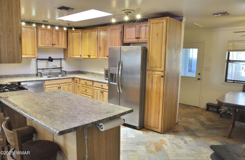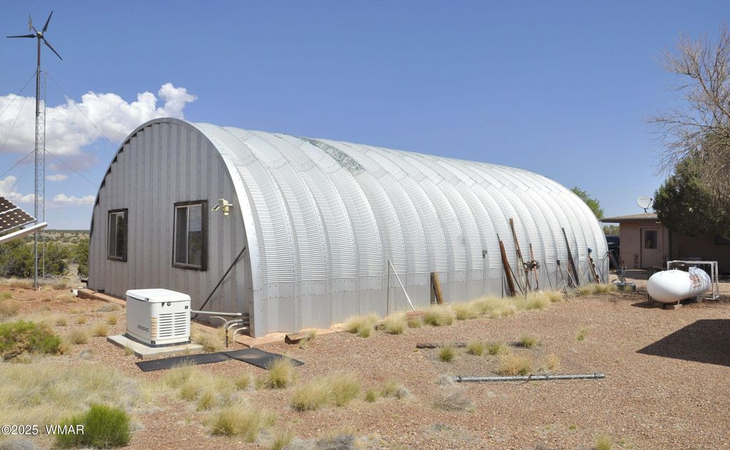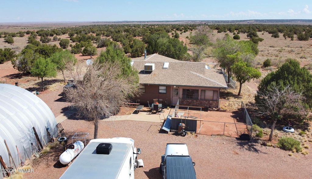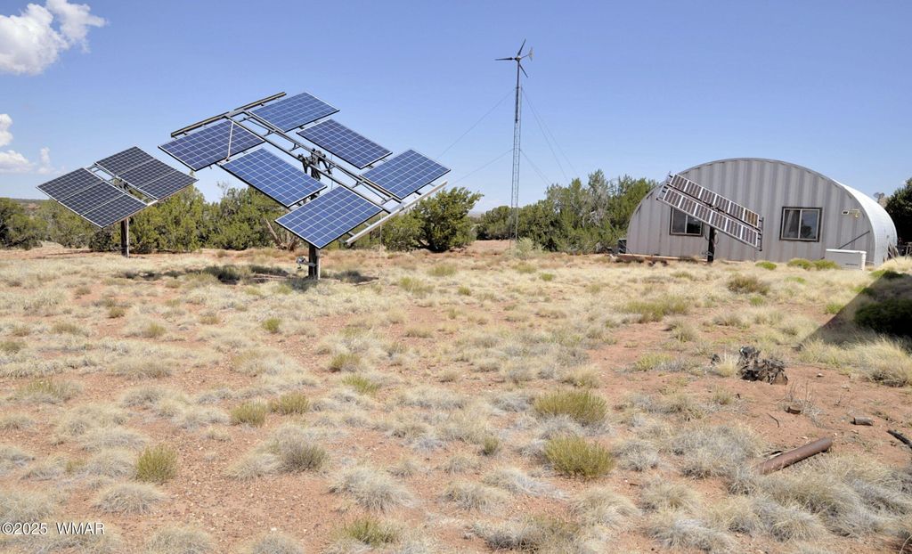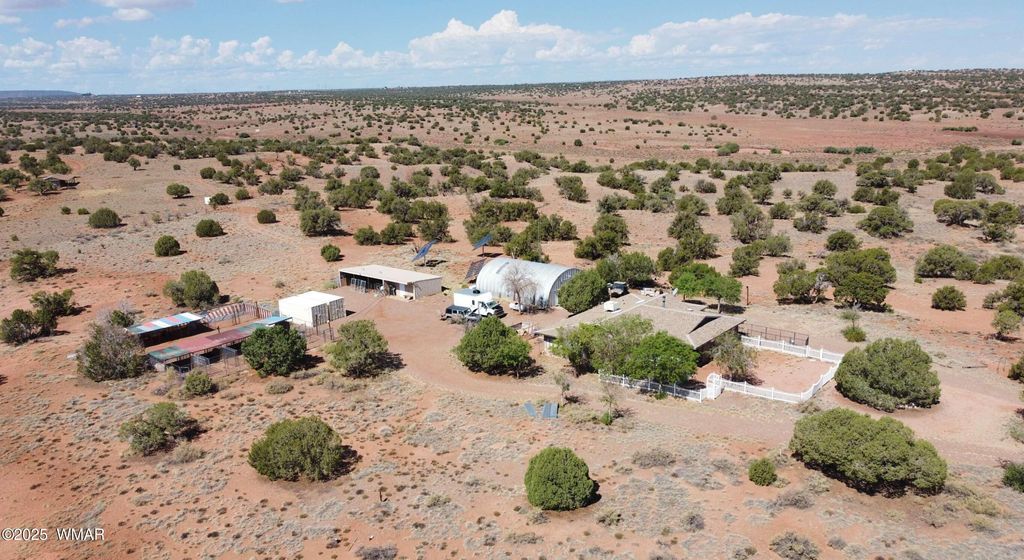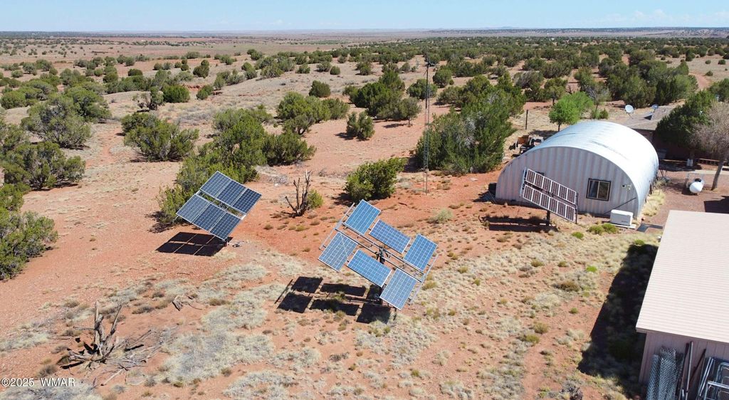 2092 sq ft, 2BD/2BA (potential 3rd BD), off grid, site built home on 40 fenced acres. Beautiful views from this property, fully set up to live self sufficiently, sustainably. 30 x 40 Quonset on cement (w/power, water, propane, W/D hookup) & additional 20 x 20 storage, horse stalls, & chainlink fenced yard for the dogs. Private well into the Coconino Aquifer (reg # 55-544157). See well info under documents. New well pump, pressure tank & dish washer in 2025, as well as new (2020 & newer) slate tile, complete kitchen remodel, 11KW propane generator, roof, on demand water heater, washer/dryer, & lithium batteries for the 48 volt solar system. Approx 21 mi to Snowflake, 38 mi to Show Low, 1.2 mi to maintained rd, & 6 mi to pavement. Many frost free water spigots, graveled driveway/parking.... RV hookup, & rock hounds delight (including petrified wood). Some furniture conveys (living room). Additional Quonset kit (20 x 40) available (negotiable). Property will easily appraise at this price. Additional features list under documents tab