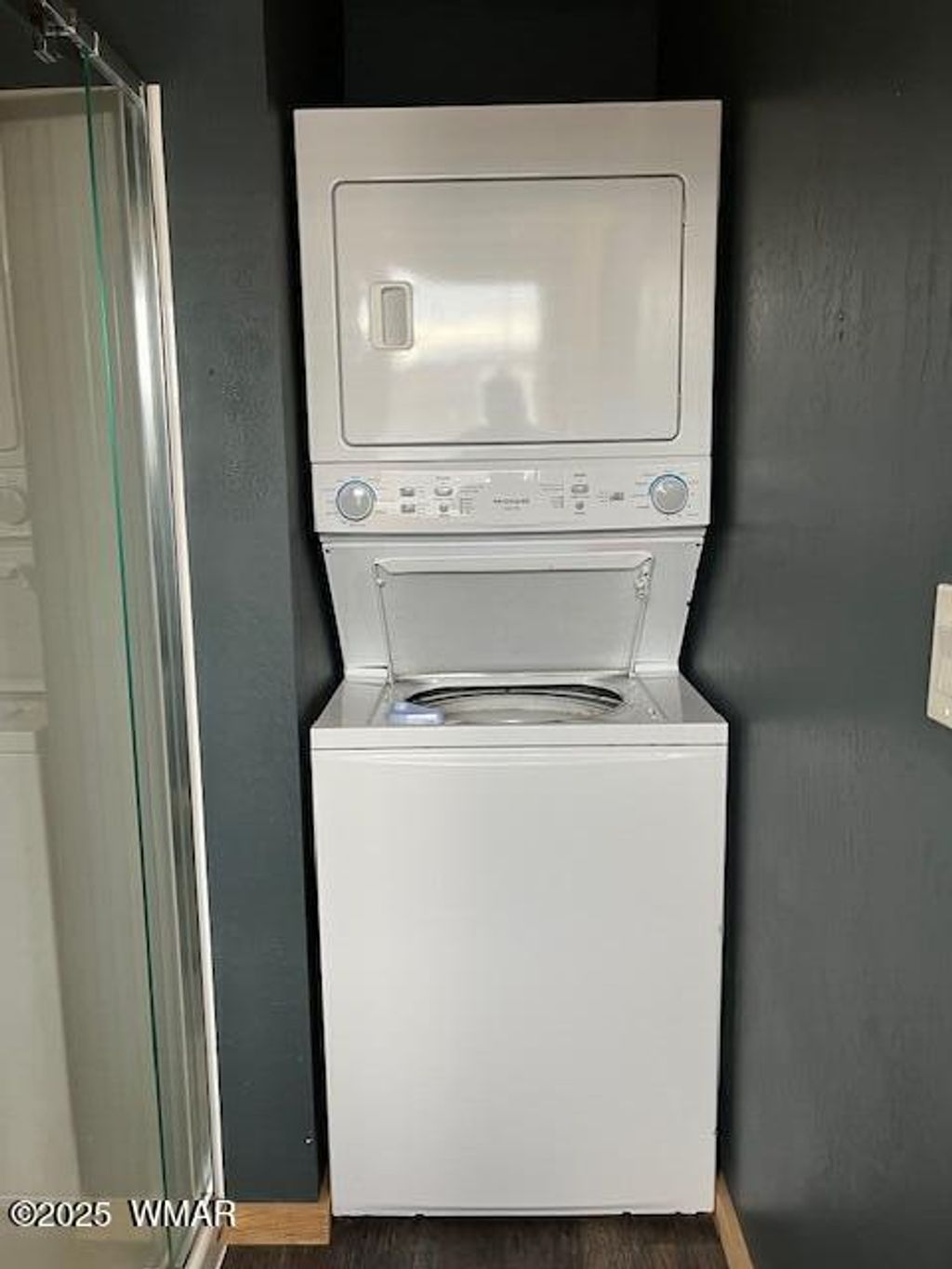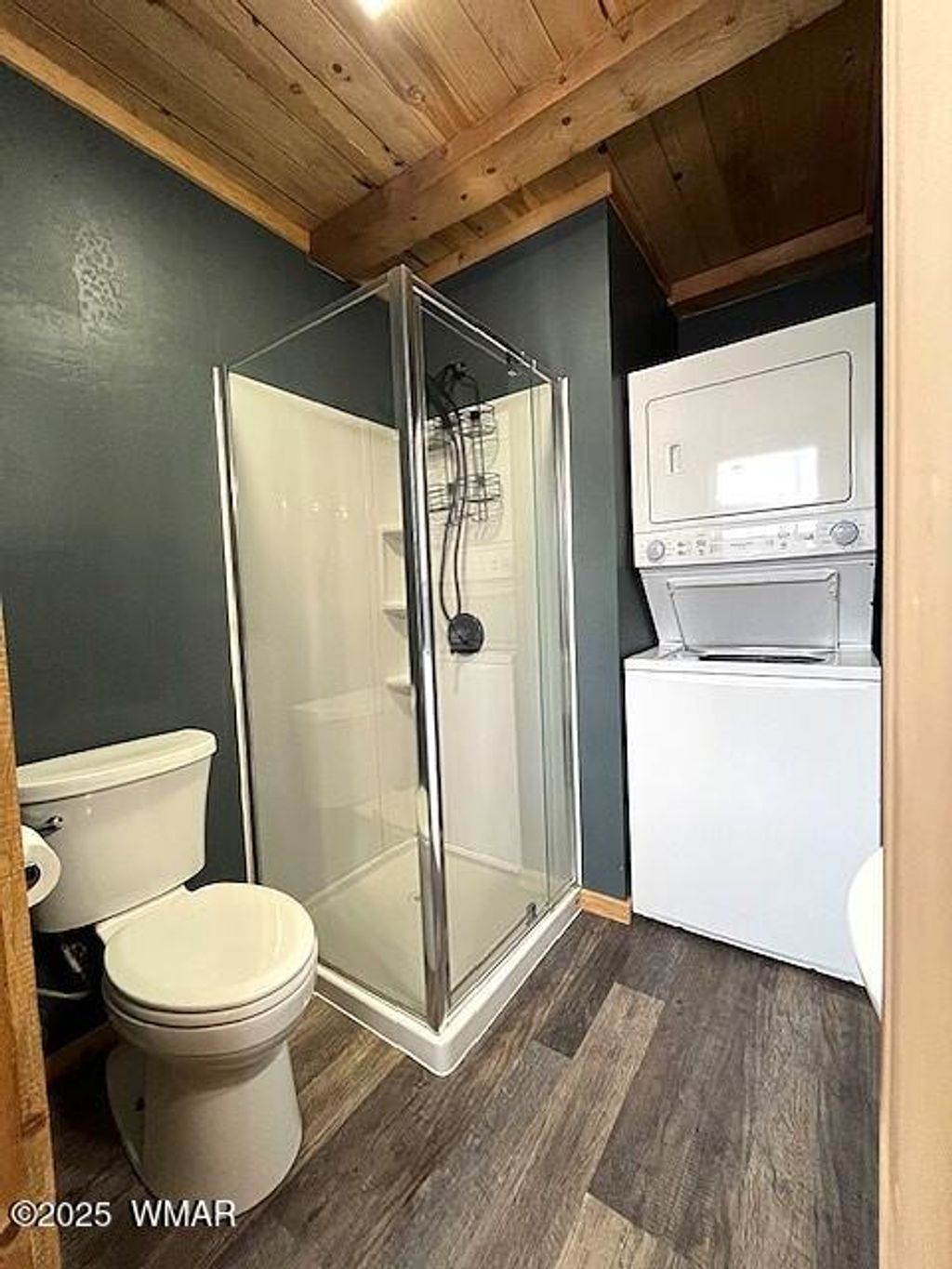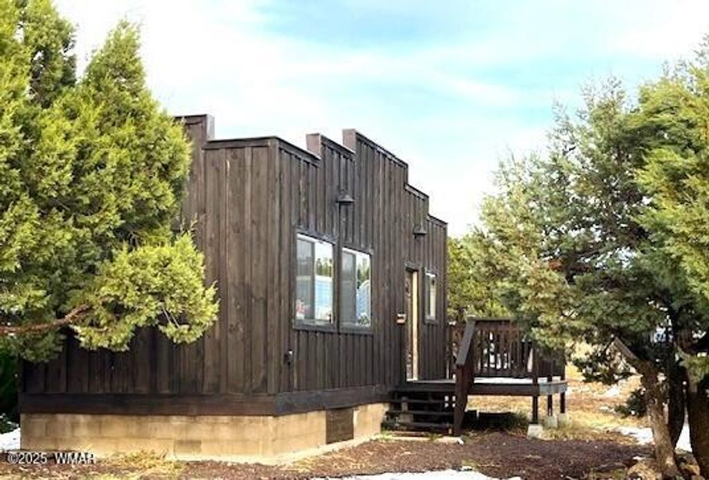 Come up and enjoy low maintenance living in the heart of the White Mountains! Despite this home's ''tiny'' footprint, it has a BIG presence. Full kitchen with an island, refrigerator, oven/range, and microwave. Throughout you'll find wood accents including tongue & groove ceilings, wood beams, and natural wood window framing. Plank floors for low maintenance living and the stackable washer & dryer set is included! There is plenty of room on the lot for expansion, too; like more decking, gardening, a pergola, or even a man cave or she shed. If you're looking for a home away from home, an income property, or year-round living in the White Mountains... you've found it!! Leasing fees are $400 monthly and include water, sewer, and individual trash service.