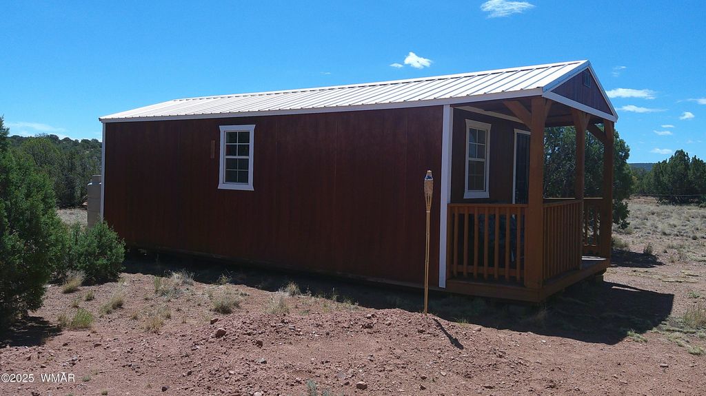 2.36ac lot in Ranch of the Golden Horse. 12x30 shed with 2 rooms and a porch and 8x40 steel shipping container make for a great start to the property. A Watson Wick septic system installed and functional(not county permitted) already passed an inspection. 1350gal water holding tank. Interior of the shed will be painted, flooring done and a shower/plumbing installed along with a gas heater prior to closing. Cinder block skirting and steps will also be added. Less than 2 miles from the highway and on a county maintained road makes access easy by car! Nicely treed for privacy, property is very quiet. About half the property is fenced with a 12ft gate for access. Perfect for animals! Includes parcel numbers 403-07-501 & 403-07-502.