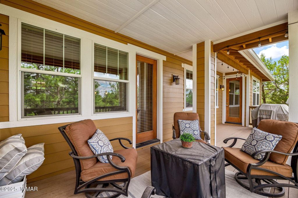 Nestled on one of the premier lots in Show Low Bluff, this beautifully maintained home offers serene views of the surrounding trees from your back deck. Enjoy peaceful mornings & cool evenings on the covered Trex decks. The open concept split-bedroom floor plan provides functionality & privacy. A versatile bonus space between the guest bedrooms is ideal for a home office, den, or playroom. The spacious kitchen features an island, ss appliances, & plenty of storage, making it the heart of the home. Cozy up to the gas fireplace in the living room with views of the trees. The primary suite offers dual vanities, walk-in closet, soaking tub, & walk-in shower. This home is move in ready & has a BRAND NEW roof! The adjacent lot is available for $60,000,an incredible opportunity to expand your space or preserve your privacy.