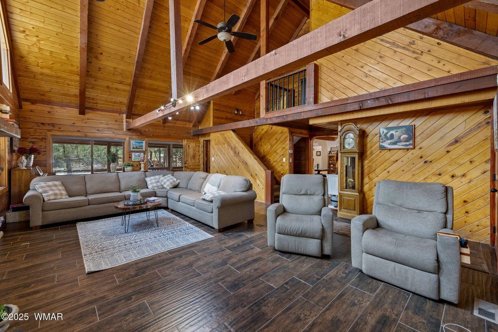 Magnificent 2273 sf home with additional 988 sf finished basement on heavily treed 2.6 acres in a coveted area of Overgaard! 3 BR, 3.5 baths with 2 additional rooms that can be used as bedrooms in the finished basement. Main level has a spacious living room, ½ bath, kitchen/dining area, a newly added master suite and bath, laundry area and expansive covered porch. Enormous 2nd level bedroom with ensuite bath can be utilized for a multitude of functions. Finished basement has one bedroom, a full bath, a storage room with additional laundry, and two other fully finished rooms. Outdoors is a detached garage with 2nd level work room, a metal garage, green house, well house, and a chicken coop. A private well serves the property. This property has excellent vacation rental possibilities, too!