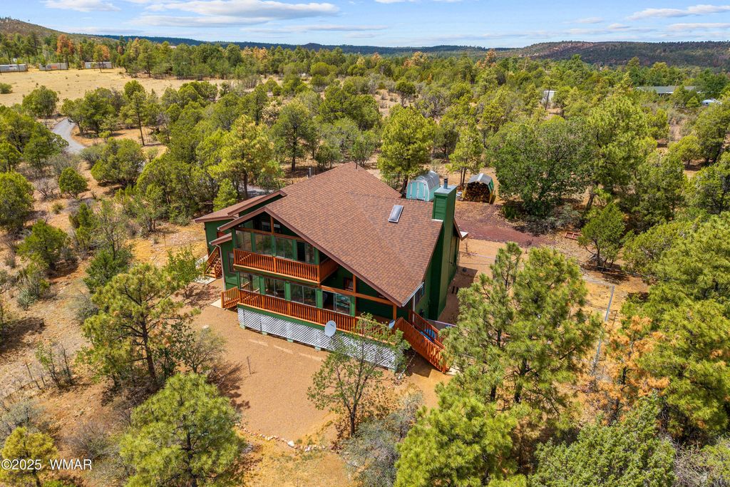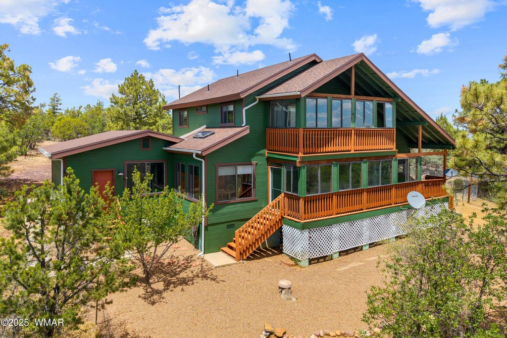 Welcome to your mountain getaway in charming Pinedale, AZ! This 3 bed, 2 bath beauty sits on 5 usable acres with room to roam. Primary suite is downstairs, with 2 upstairs bedrooms"”one featuring a private balcony with dreamy views! Cozy up in this character-filled home with front and back porches made for wildlife watching and star-gazing. Fresh carpet upstairs, new paint in 2020, and a newer roof (2018) mean the hard work is done! Clean, cool, and just a quick escape from the Valley"”don't miss this one-of-a-kind gem!