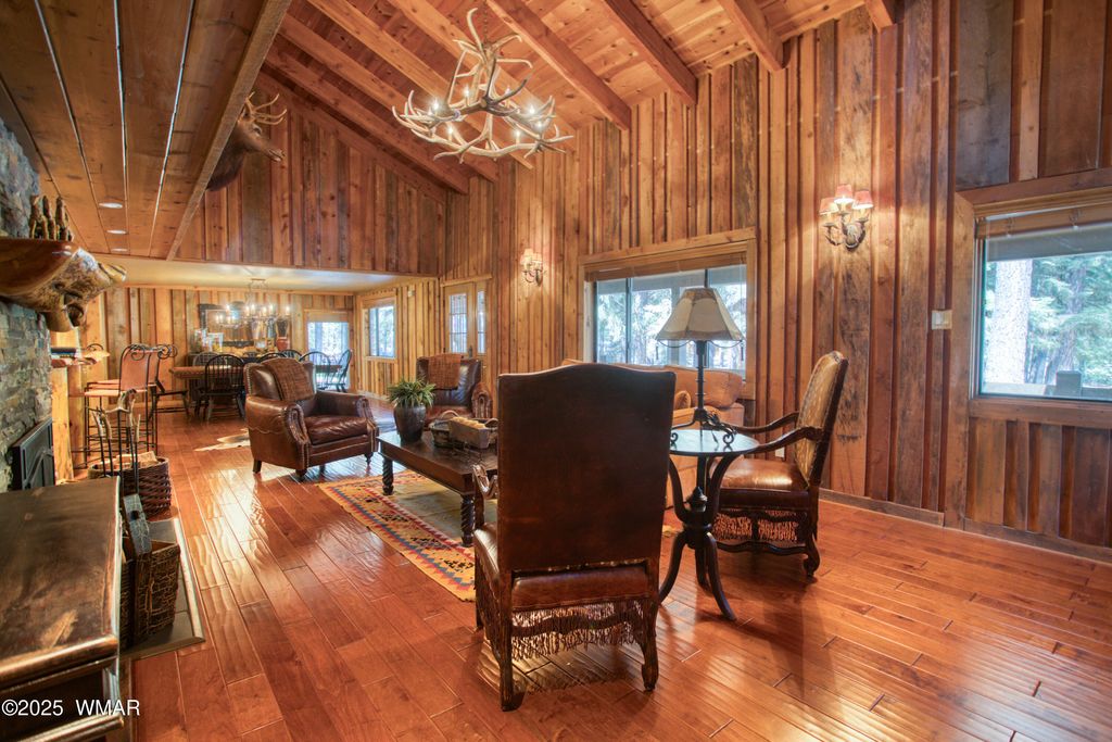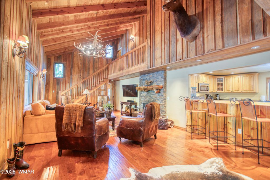 White Mountain Summer Homes! Beautifully remodeled and expanded 6 bedroom, 4.5 bath on a wonderful .56 acre interior lot close to the gorgeous meadow! Vaulted ceilings, wood floors, 2 car garage, fabulous kitchen. 2 fireplaces. 2 Laundries. Spacious downstairs master w/ fireplace, separate tub and shower, walk-in closet, dual vanities. Downstairs also has 2 guest bedrooms, bath and powder room. Upstairs are 3 bedrooms and 2 baths. The finishes and decor are top notch! Entertaining is a dream with a long extended covered patio and covered grilling station. The oversized 2 car garage w/ built in storage and work area are immaculate. Beautifully landscaped w/ a children's play area in the back yard. Great opportunity!