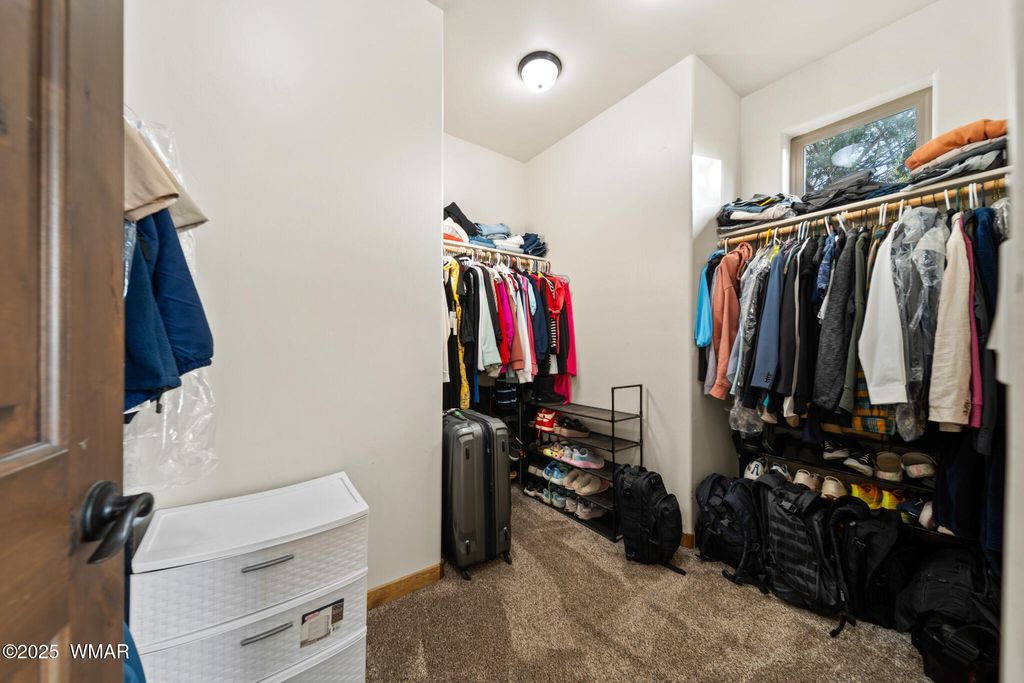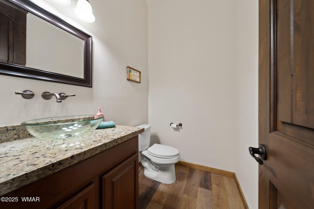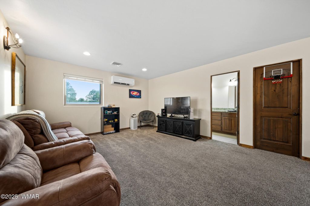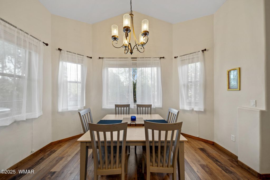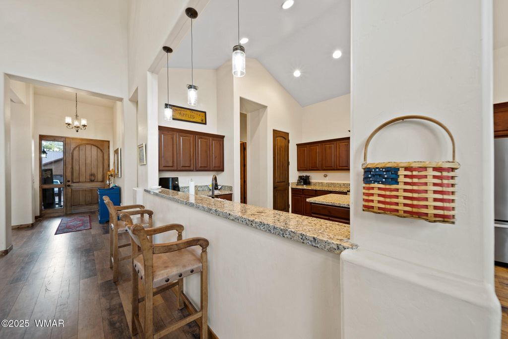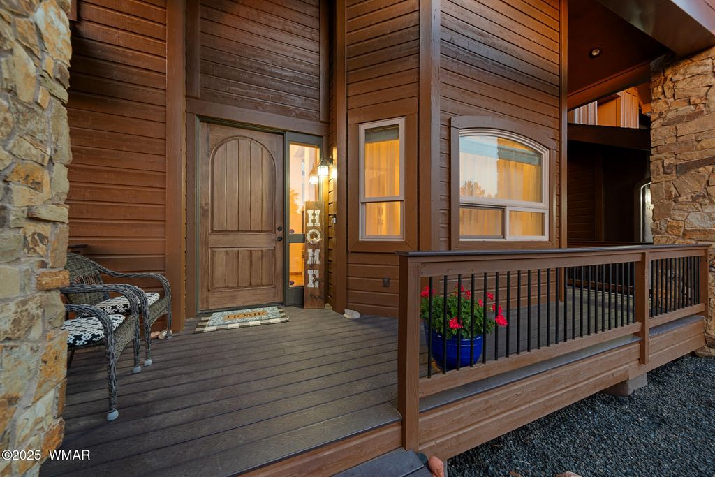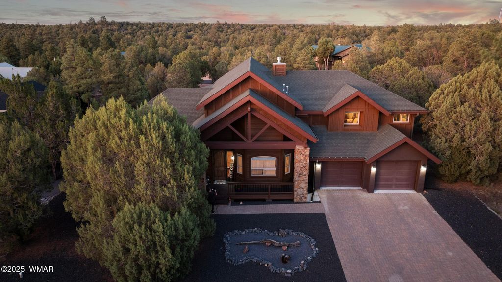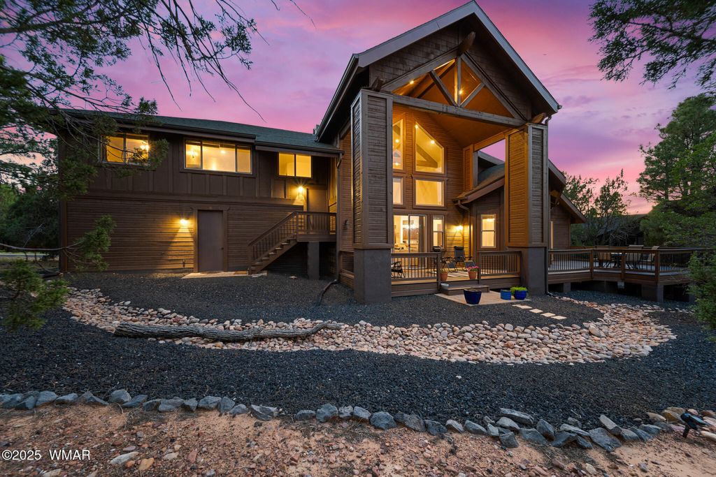 Stunning Home in Eagle Mountain Estates - Gated Community in the White Mountains VA ASSUMABLE LOAN at 3%!! Located just minutes from town in the sought-after Eagle Mountain Estates, this gorgeous property offers the perfect blend of elegance, comfort, and flexibility. Nestled on TWO LOTS totaling APX 0.42 acres with tall pines and a flat, usable layout, you can enjoy exceptional privacy or take advantage of the separate parcel number to build another home or sell the lot as an investment. Step inside and be greeted by a grand foyer with a solid wood entry door and glass sidelight that fills the space with natural light. The cathedral ceilings and exposed wood beams in the great room create a warm, inviting atmosphere, enhanced by the gorgeous plank flooring and solid wood doors and trim throughout. The split floor plan offers a private primary suite, while a second great room upstairs with two additional bedrooms, a full bath with double granite vanities, and beautiful tile surrounds serves as perfect guest quarters or additional living space. A mini-split system provides year-round comfort. Car enthusiasts will appreciate the four-car epoxy-coated garage, extra deep with tandem parking options. Outside, enjoy low-maintenance landscaping with rock, a beautiful paver driveway, stone columns, and Trex decking on both the front and back porches. Additional Features: " Separate dining room " Stunning solid wood trim and doors " Granite countertops throughout " Gated community minutes from town " Surrounded by tall pines in the White Mountains This home delivers exceptional craftsmanship, versatile living spaces, and investment potential all in one of the area's most desirable communities. You can sell off the lot behind if not needed!! An amazing price for such a beautiful crafted home!!
