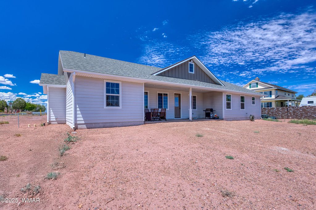 Welcome to this beautifully cared-for 4-bedroom, 2-bathroom home offering over 2,150 sq. ft. of thoughtfully designed living space. Built by R & C Anderson Construction in 2024, the home features vaulted ceilings and an open floor plan that creates a bright and spacious atmosphere. The large kitchen with granite countertops, knotty alder cabinetry, and an extra-large pantry is ideal for cooking, entertaining, and stocking up with ease. A generous family room and expansive front and back porches provide plenty of space for gatherings, celebrations, or simply enjoying the peaceful surroundings. The primary suite includes a luxurious soaking tub and oversized walk-in closet, while the additional bedrooms also feature spacious closets. A high-functioning laundry room with a utility sink, linen closet, and Cat 5 hub access adds both convenience and efficiency. Smart features and upgrades include spray foam insulation (including garage walls), insulated garage door, soft water loop, barn door detail, and metal soffit, fascia, and rain gutters around the entire house. The driveway is extra large, and fencing is already installed on two sides. The home is fitted with a digital meter, with the option to switch to a smart meter if desired. Location & lifestyle: Set in a community surrounded by natural beauty and activity, this home is near golf courses, hiking and biking trails, and a bike park that offers fun for all ages. From the neighborhood, you'll also find striking views of the nearby landmarks, adding to the sense of place. This home blends comfort, style, and functionready to welcome its next owner