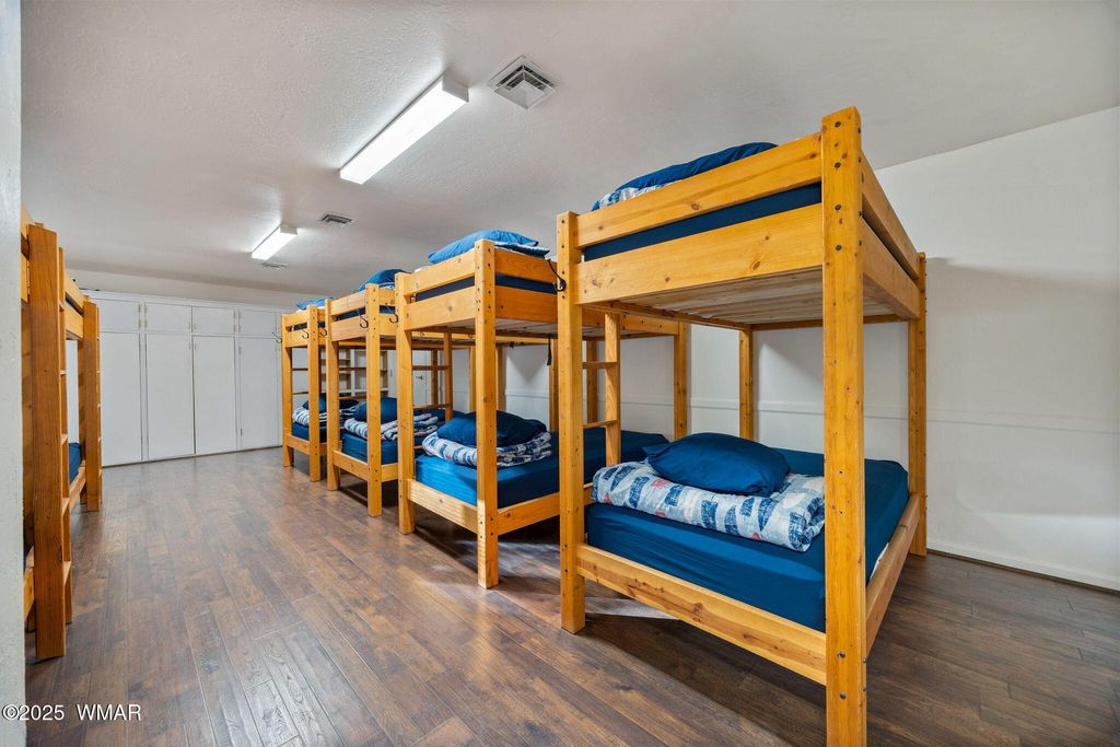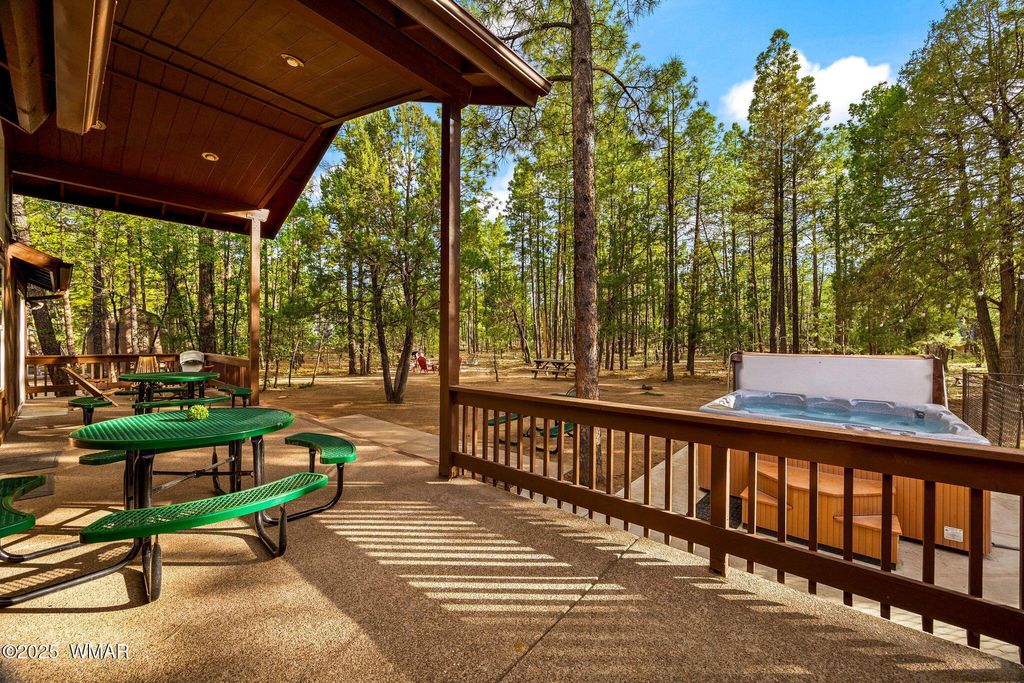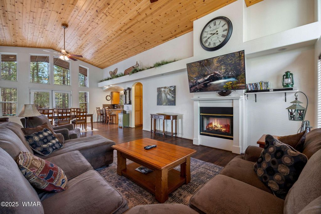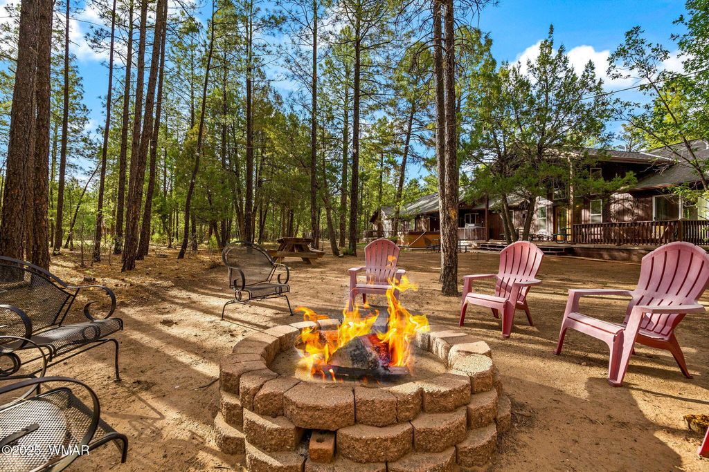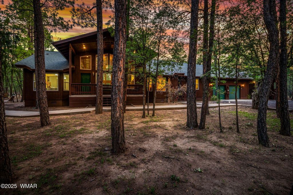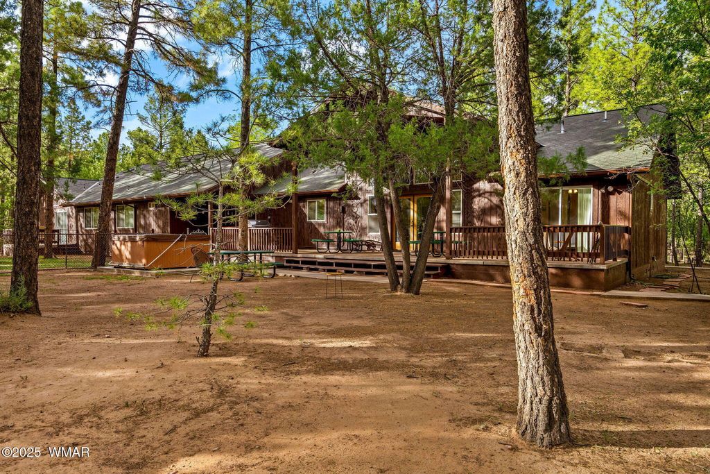 Welcome to your dream mountain getaway. This beautiful custom single level home offers 3,721 sq ft of versatile living space on +/- .97 acres in a quiet cul de sac surrounded by tall pines with no HOA. The main home features vaulted ceilings with rich tongue and groove accents and a total of five bedrooms, including a spacious bonus or bunk room with its own bathroom, perfect for family, friends, or guests. The kitchen is designed for both style and function, and the laundry and mudroom with built ins keep everything organized. Forced air and central AC make it easy to enjoy year round comfort. The separate 963 sq ft casita is a true gem with a full kitchen, walk in pantry, washer and dryer, and accessibility ramps, making it ideal for extended family, friends, or income potential. Outdoor living shines with four covered and uncovered decks positioned around the home, a built in BBQ for summer cookouts, and a hot tub that conveys with the property. The backyard is a private retreat with lush landscaping, a cozy fire pit area, a half court concrete basketball court, a utility shed, and space already allocated for a greenhouse. The circle drive adds convenience and plenty of parking for guests. Freshly painted and fully furnished, this home is move in ready and includes fun extras like a foosball table, ping pong table, shuffleboard, weights, a weight bench, and more. Currently a successful Airbnb, it is perfect as a primary residence, second home, or income producing investment. Best of all, you are just minutes from hiking and biking trails, lakes, and everything the mountain lifestyle has to offer.