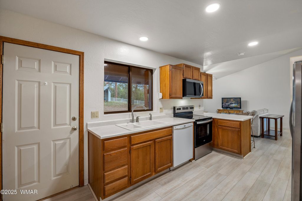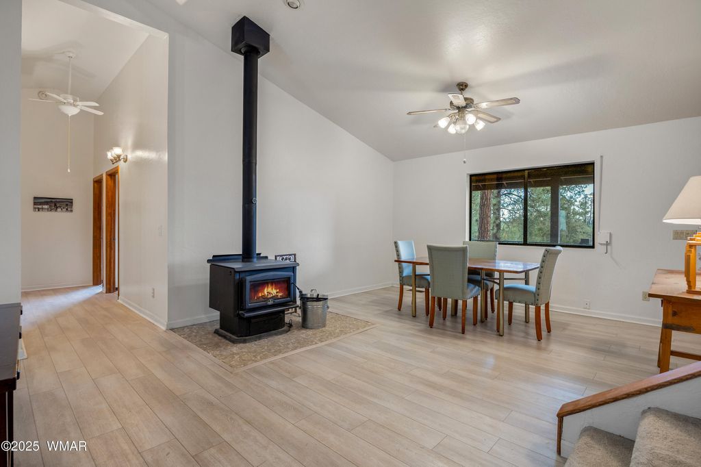 Plenty of room for the entire family & friends in this freshly stained 5BR, 3BA home on a 2+ acre ponderosa pine treed home site! Enjoy the full length covered deck, or escape to the upstairs primary retreat, complete with your own private balcony for peace & solitude. Upgraded modern flooring! Main floor enters into the great room and features soaring vaulted ceilings, bay window in DR & wood burning stove for added ambiance or winter warmth. The huge laundry room could double as a ''she cave'' for arts, crafts, sewing, etc + there's a bonus room for extra guests or game room. The oversized 2.5C detached garage has tons of workbenches & pull down stairs for attic storage. Comes complete w/horse setup (stalls),& chain link backyard for the kids or pets. Easy year round living! Privacy!