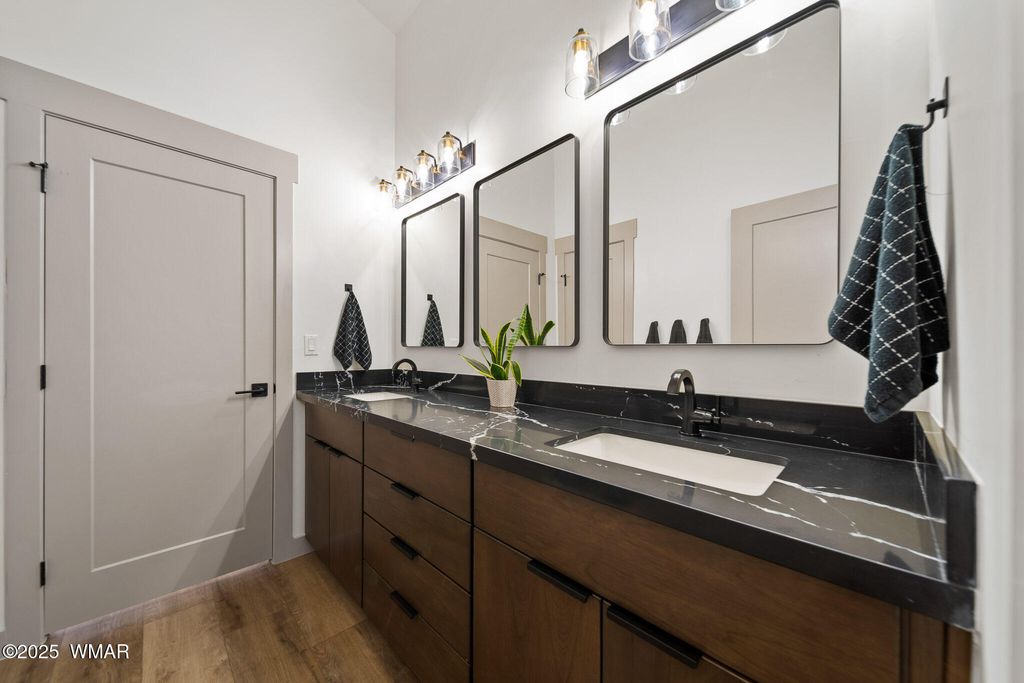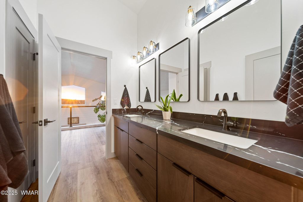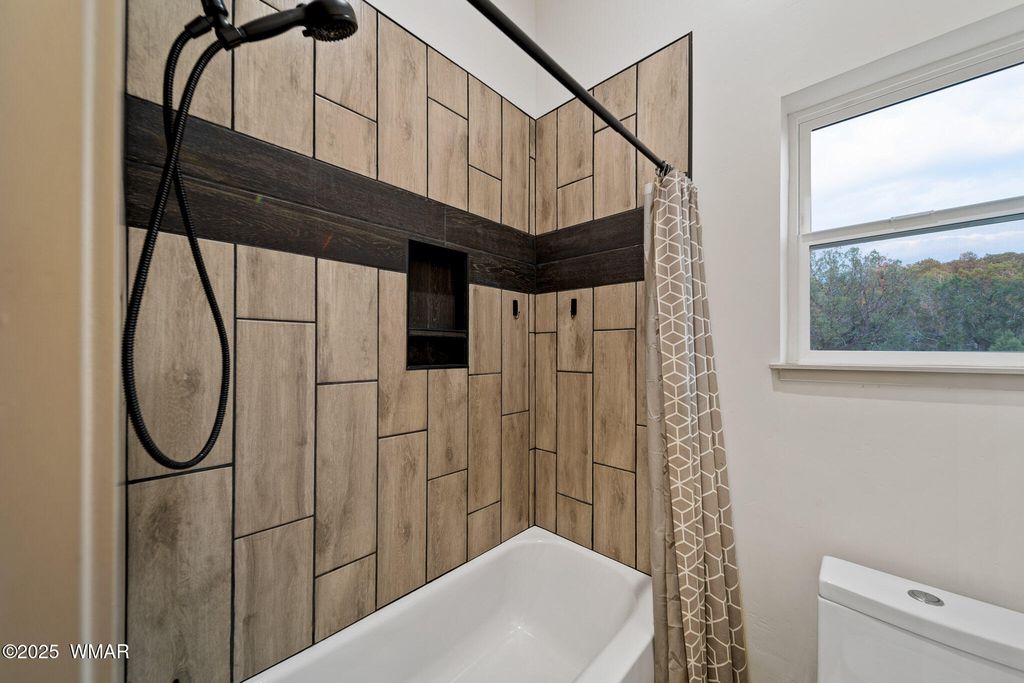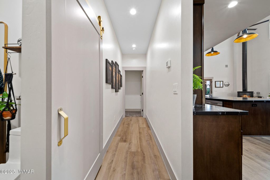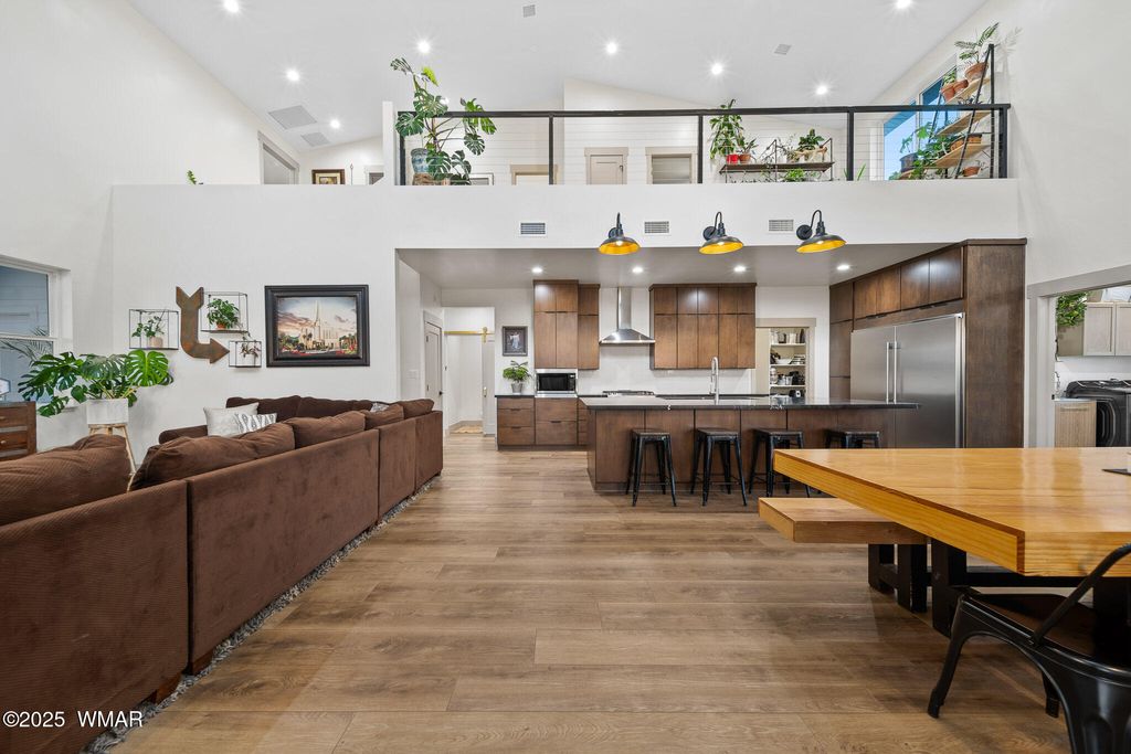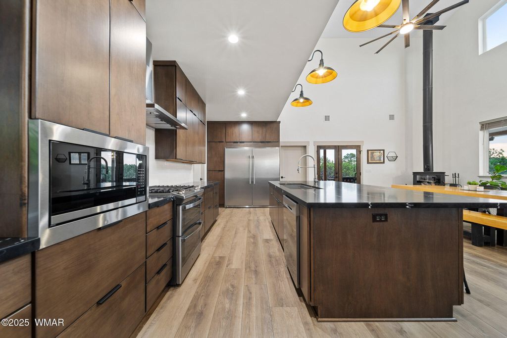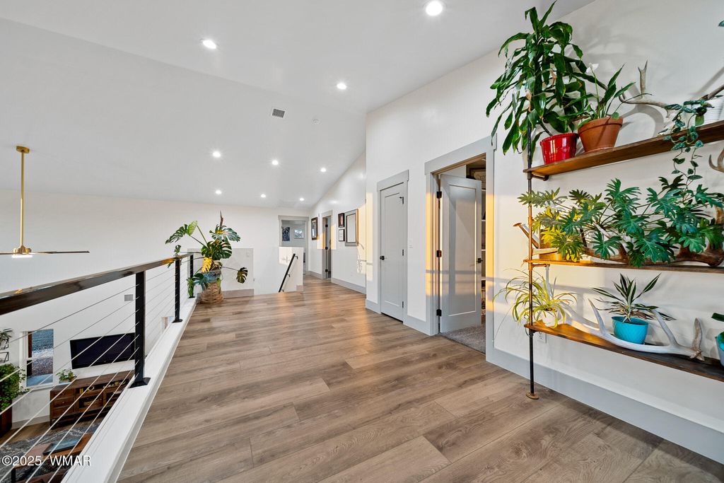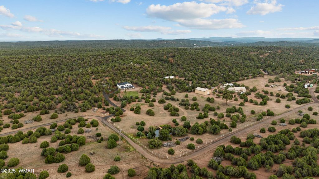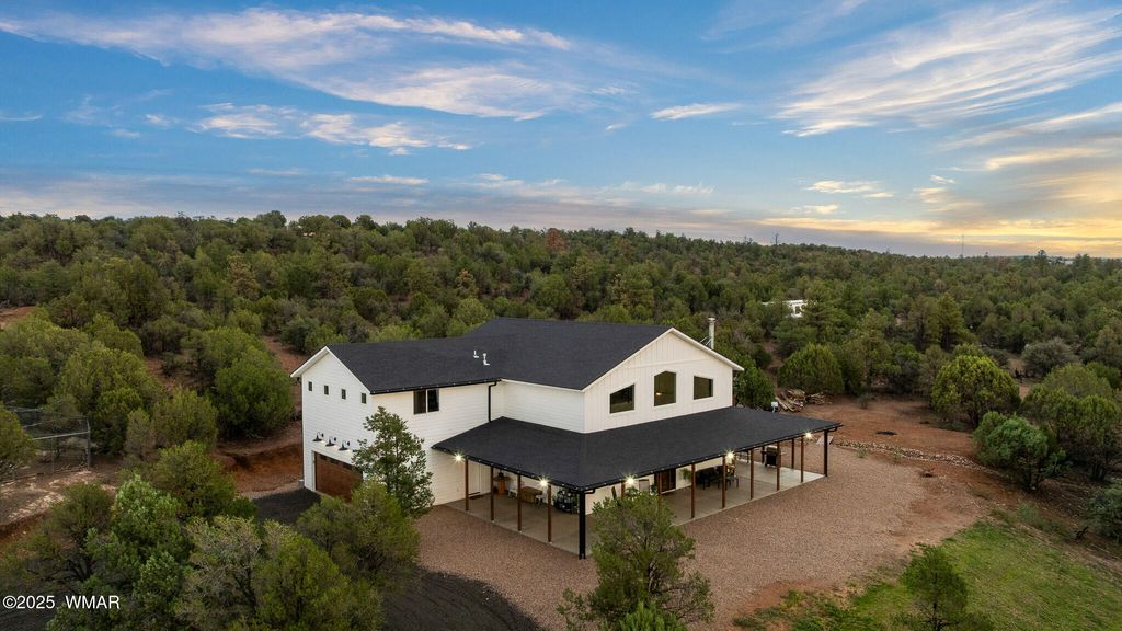 Your ''like new'' modern dream home in the country is nestled in the community of Pinedale just outside of Show Low. Home sits on a gracious 10.75 acre parcel BORDERING NATIONAL FOREST, HAS A PRIVATE WELL, a pond & was completed in late 2023. You'll adore this expansive 12 ft porch for entertaining or just relaxing while you watch the wildlife and sunsets. Walk inside to captivating charm with soaring ceilings, open concept from top to bottom , plenty of natural lighting throughout, a modern design kitchen , large 10 ft granite island, a 43 inch sink, an oversized stand alone fridge/freezer and an extra large pantry with plenty of storage space conveniently designed for storing your small kitchen appliances. If you're into healthy building materials the carpet is Green Label Plus 100% VOC free, the LVP and paint are also GREENGAURD gold certified. Lower level includes the Master Bedroom with a generously sized bathroom, master closet, an additional half bathroom for guests in the hallway, a mudroom/garage entry and an oversized laundry room. Second level boasts a large open loft , a spacious bonus room that can be used as a 4th bedroom, possibly even a 5th, two additional oversized bedrooms with plenty of storage space and another full bathroom.
