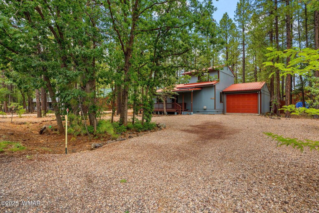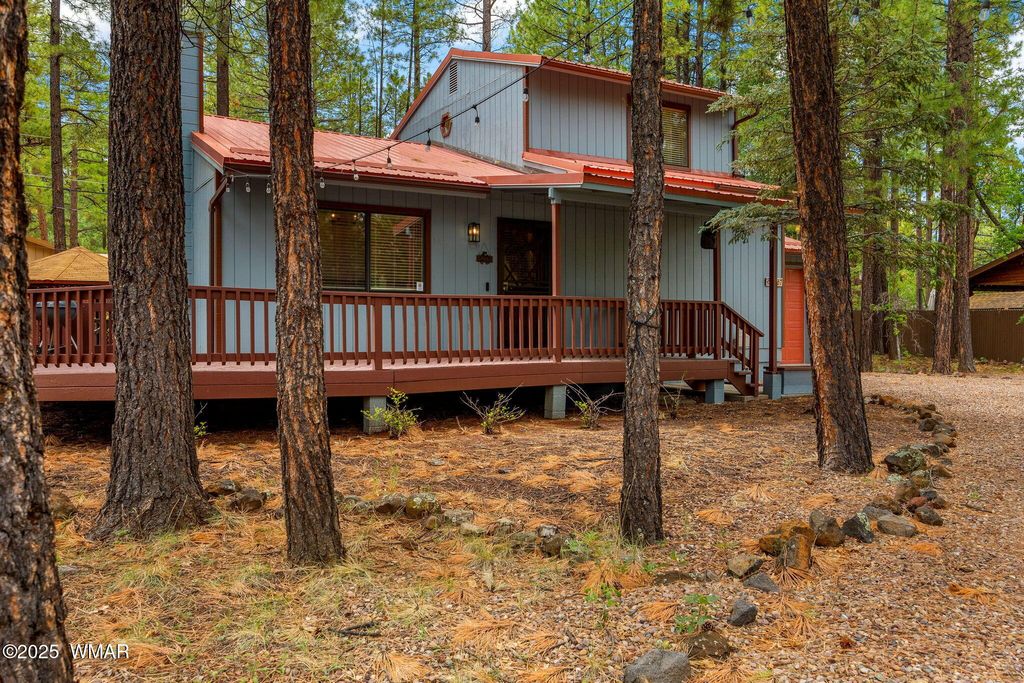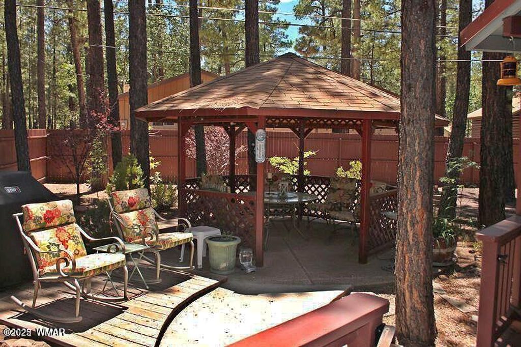 Your Cabin in the Woods! Great Vacation Rental or 2nd Home. Great room with Tongue n Groove vaulted wood ceiling planks, stone fireplace and laminate wood plank flooring. Open kitchen and dining room. NEW A/C for comfort during summer months. Spacious Fenced Lot and Gazebo Patio for Entertaining and Deck that wraps around from front to back with lots of green landscaping and trees. Many updates - flooring, fireplaces refaced, paint, lights, fixtures, faucets. Plus Garage. Beautifully furnished home is only a 5 minute walk to the Rec Center. Have fun in the pool, hot tub, playground, gym, playing racketball, pickleball or tennis. 2 Bedrooms 2 Bathrooms with 1 Bedroom Upstairs and 1 Bedroom Downstairs. Enjoy all the White Mountain activities like likes, skiing, hiking and lakes.