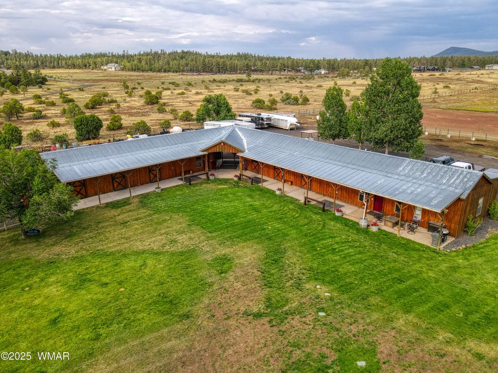 MOUNTAIN MAJESTRY MEETS EQUESTRIAN RANCH LUXURY!! Nestled amid tall pines and open pastures, just ten minutes from Show Low and Pinetop, this custom home places you in Arizona's White Mountains. Enjoy year-round outdoor recreation and easy access to local shops and restaurants. The residence features expansive wraparound decks with panoramic views of pastures, horses, stables, and landscaping. This four-bedroom, three-bathroom home is designed for entertaining, with an open floor plan, tongue and groove wood, and custom woodwork. The chef's kitchen has granite countertops and stainless steel appliances. Three domestic wells ensure a reliable water supply, with eco-friendly solar backup. The equine barn offers six stalls with turnout paddocks, a tack room, and a breezeway. Connected to the Connected to the barn is a 1,107-square-foot apartment with two bedrooms, two bathrooms, and a living area. The property also features a massive garage and workshop. Don't miss this opportunity to own a ranch in Arizona's White Mountains. Watch the video: https://photos.smugmug.com/2025-Real-Estate/FOUROFAKIND/i-fTnzXwX/0/McVpZ3Wk5WMF4jCMVPVdptXgFfDC5HhNWDnHQHT5S/1280/SPONSELLER-1280.mp4