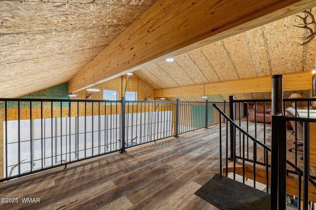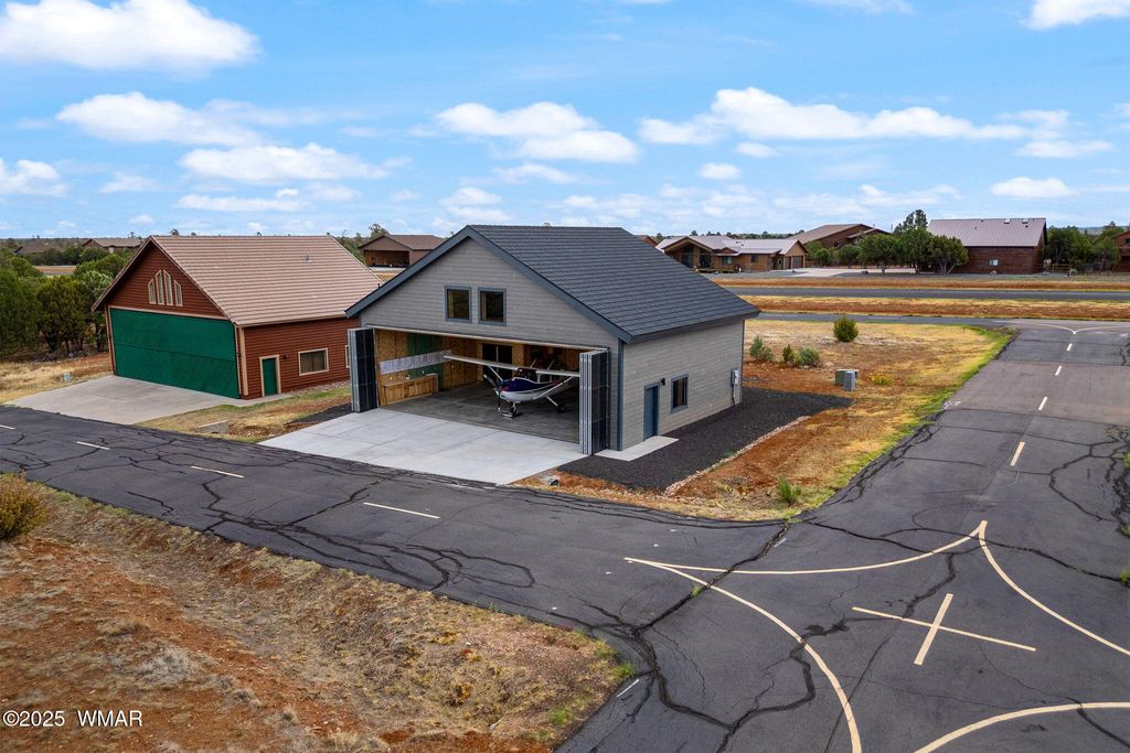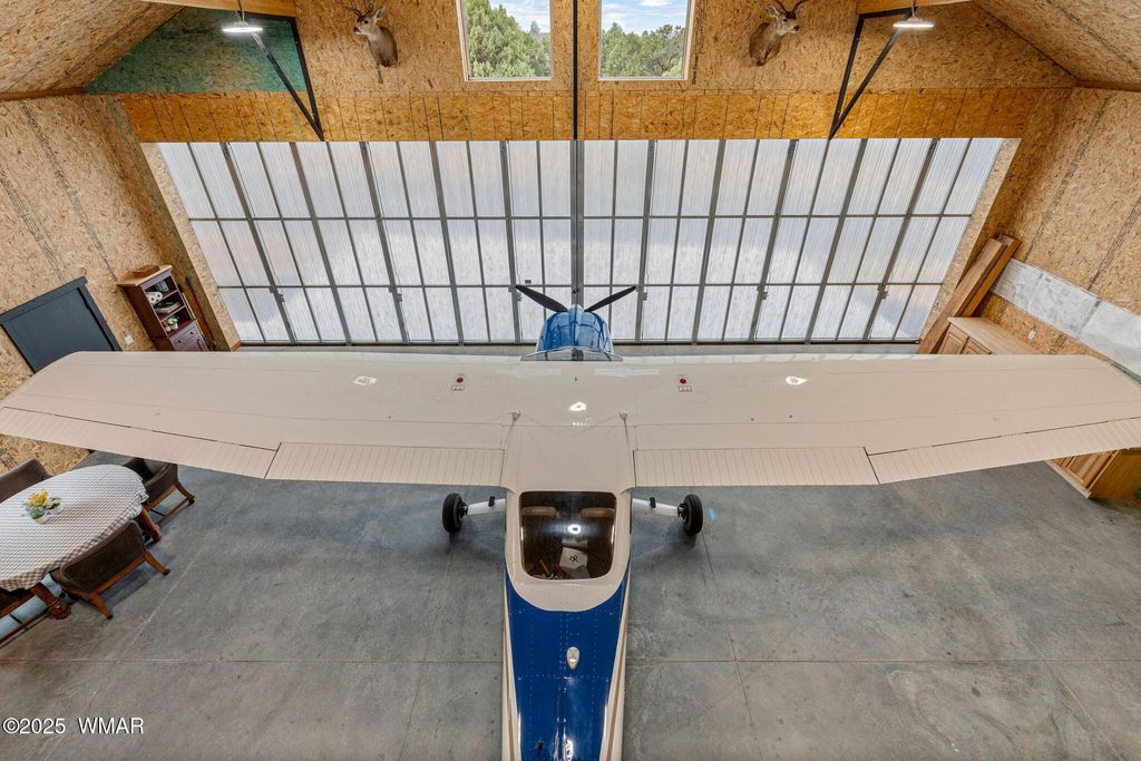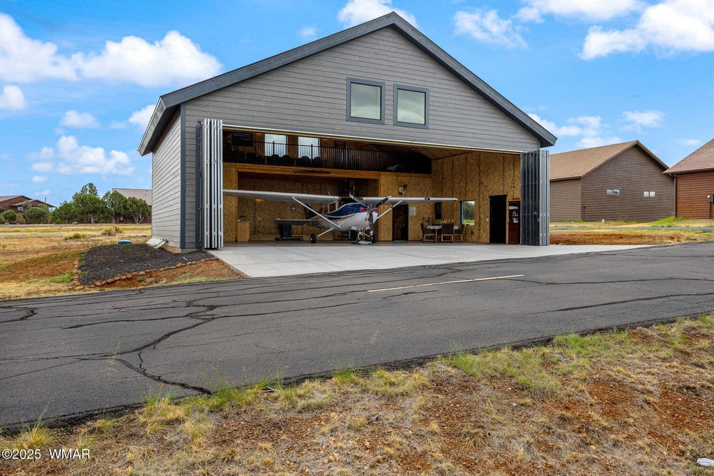 Fly to the Mogollon Airpark (AZ82) and park your plane in this 2024-built hangar, 150 feet from the middle of the runway. This SIPS-constructed hangar is super insulated with 8 inch walls and 12 inch roof panels. The hangar is 46 x 36 with a 12-foot Horton Stack Door that opens to almost 40 feet. Inside, you'll find a stunning vaulted ceiling with 30 inch glue lam beams and iron circular stairs leading to the mezzanine area. You'll have runway views and iron railing along the mezzanine so you can look down on your aircraft and toys downstairs. There you'll find elegant black trim and doors to all 3 rooms, a 10 x 10 office, a half bathroom and a storage room. And guess what? This hangar comes with a beautiful half-acre home lot to build your dream cabin in the pines. Come and taxi out from J-2 to the runway and experience flying in Northern Arizona - there's so much to see and such a beautiful place to explore! FULL HANGAR SQ FT 1900 PER OWNER, TECHNICALLY NO LIVING SPACE AS THERE IS NO HEATING/COOLING THIS PROPERTY COMES WITH A .57 ACRE LOT TO BUILD YOUR CUSTOM HOME AT 2791 SKYHAWK DR.
