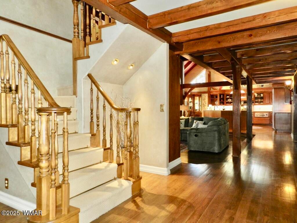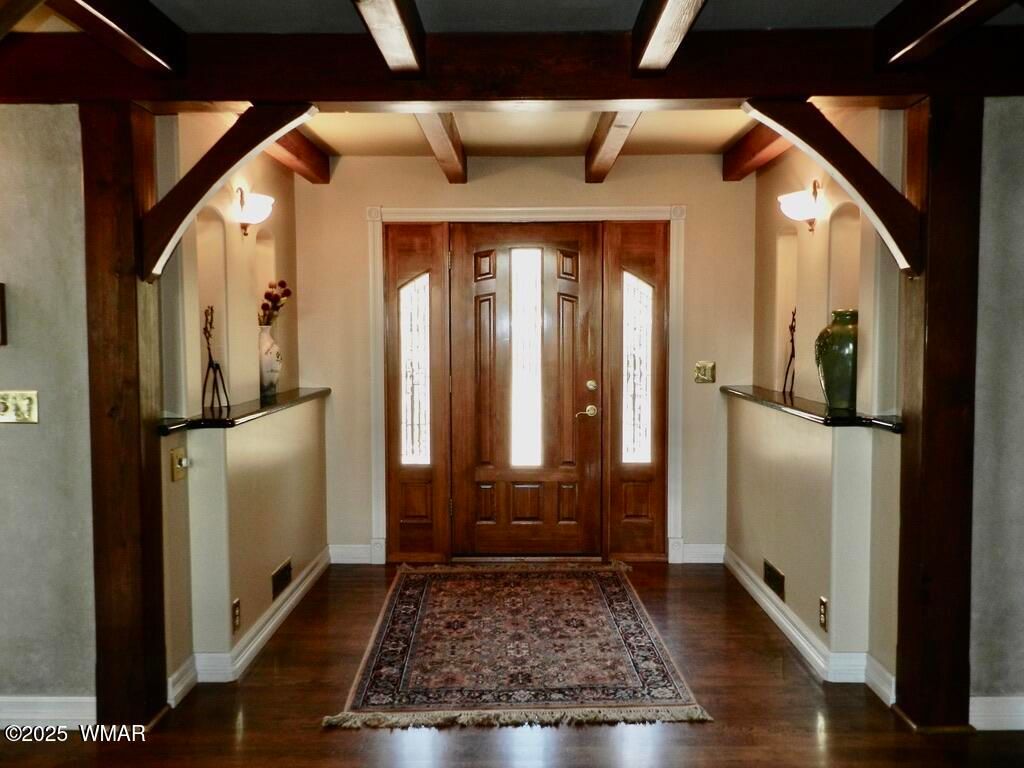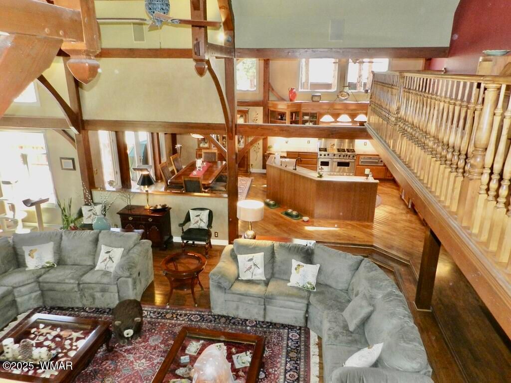 Experience Mogollon Airpark Living at its Finest - Step into timeless craftsmanship and aviation luxury in this 4,242 sq-ft timber frame masterpiece, nestled on 2.72 acres of private whispering Ponderosa Pines in the heart of the prestigious Mogollon Airpark. This extraordinary post-and-beam residence constructed from 75,000 pounds of Douglas fir without a single nail, showcases architectural artistry and enduring elegance. Rich oak flooring, exposed beams, and thoughtful finishes throughout create a warm, inviting ambiance. The home offers 4 spacious bedrooms and 3 well-appointed bathrooms, including a stunning main-floor master wing featuring its own private library, fireplace, sitting area, dressing area, spa-like bath with jetted garden tub, and an expansive private deck. Designed for both quiet retreats and vibrant entertaining, the massive living room features soaring ceilings, a gas fireplace, and beautiful custom built-ins. Adjacent, the spacious dining room flows seamlessly to an oversized deckperfect for gatherings under the pines. Culinary enthusiasts will love the entertainer's kitchen, outfitted with cherry cabinetry, gas range, wine fridge, Sub-Zero refrigerator, warming drawer, and ample prep space. Additional highlights include a huge game/exercise room, a large laundry room with pet shower and walk-in pantry, and even a private observatory building with a retractable roofideal for stargazing. The estate also includes a heated 46'W x 50'D hangar with Schweiss 13.5'H bifold door (11'H opening), taxiway access, and an expansive pilot lounge/officeperfect for aviation enthusiasts. The spacious detached 2-car garage is connected to a greenhouse and large deck, offering even more room to relax and enjoy the serene natural surroundings. Mogollon Airpark is a vibrant, social aviation community where neighbors become friends and the skies are always welcoming. Come live the lifestyle you've always dreamed of in the cool mountains of Arizona!