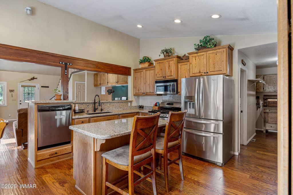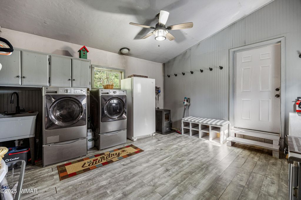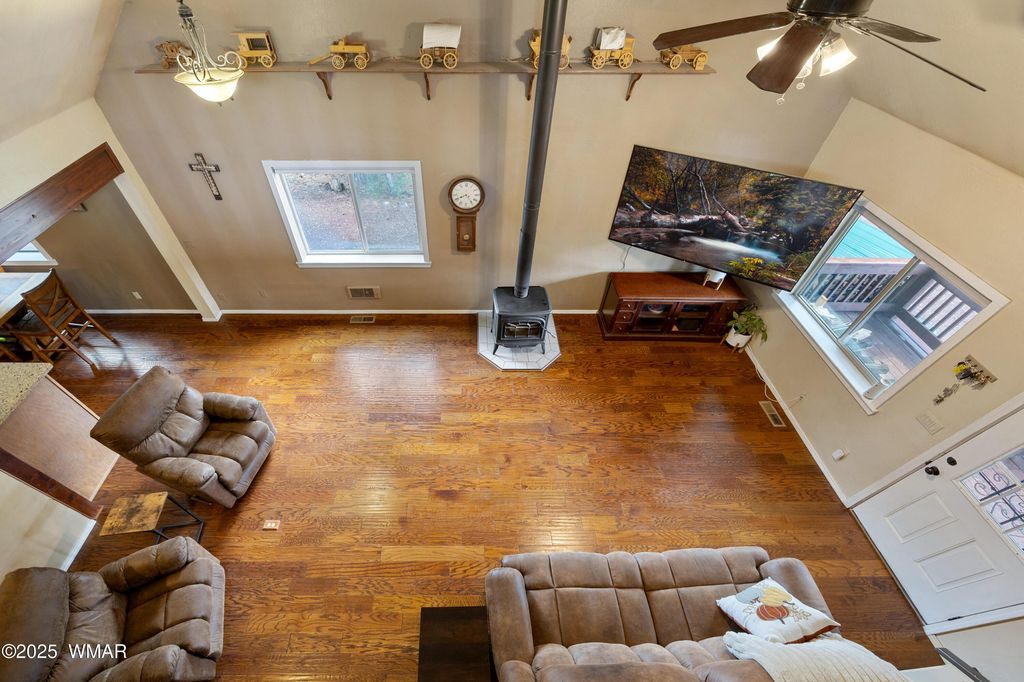 Awesome Site Built Cabin in the Pines of Overgaard, AZ! Home is open with vaulted ceilings, Master Bedroom downstairs, Large Loft, 2 walk-in closets, 2 full baths, ½ bath downstairs. Lots of storage! Beautiful views! Oak wood flooring, dust sweep, Cast Iron Wood Fireplace. HUGE Laundry/Mud Room with utility sink and Pellet Stove. Kitchen has granite countertops, knotty oak cabinets, large pantry. Massive two-story Garage/Workshop ensures everyone's imagination! 10' X 10' Garage Door, epoxy flooring, 2 hoists up and downstairs! Long Porches, Paved Yard with firepit! 2 Fenced yards, Large Garden and Greenhouse! NEW Heating & A/C - 2025. NEW Dual-pane windows-2021. Fire protectant Hardie Wood Home Siding! Home qualifies for USDA Loan Program. Complete list of updates and upgrades available.