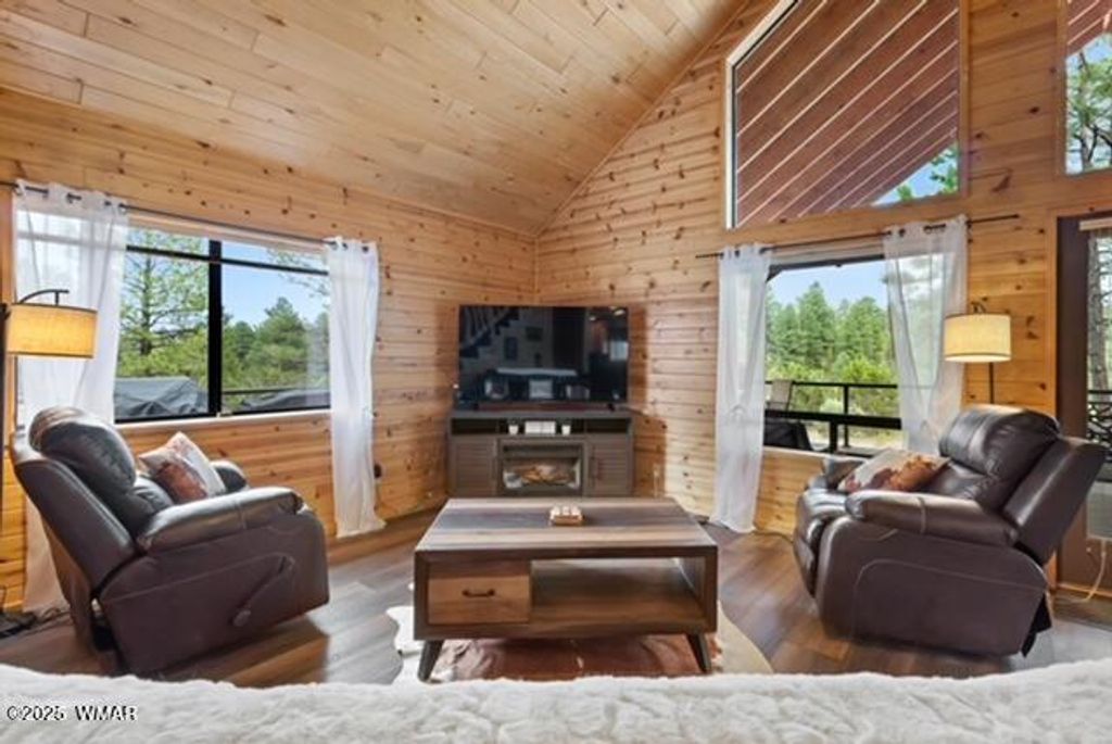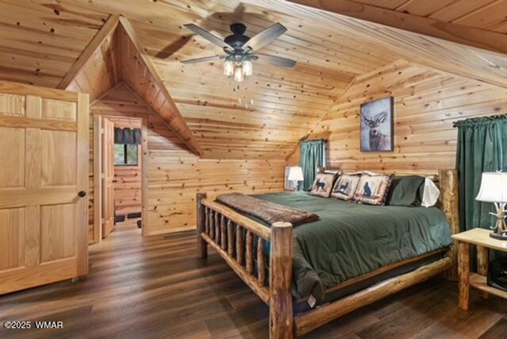 Adjoining the National Forest sits this stunning 1,664 sq. ft. cabin on 4 acres that offers two levels of comfortable mountain living with 3 bedrooms & 2 bathrooms. Updated kitchen with new cabinets & granite. New flooring, sinks, fixtures & water heater. The spacious primary suite features its own private balcony, perfect for taking in the surrounding scenery. Over 1,200 sq. ft. of deck with beautiful open-beam construction & a new roof provides the ideal outdoor living space, complete with custom metal & cable wire railing. Built with quality in mind, the home includes dual-pane windows, spray foam insulation under the crawl space floor, & insulated int bedroom walls for added comfort. The int showcases rustic charm with knotty pine walls & knotty aspen ceilings. Offered furnished. Modern conveniences include central air & heat, as well as a rain gutter system. Many upgrades/updates Recent upgrades from the last 2 years include. New Floors throughout New cabinets and granite countertops throughout. New hot water heater new roof in 2024 New gravel driveway 2023 New 8 x 20 Graceland shed 2023 New furnishings/decor and househodl goods throughout 2023 New handrail and additional safety cables on deck 2024 Automatic float to fill water tank from well 2023.